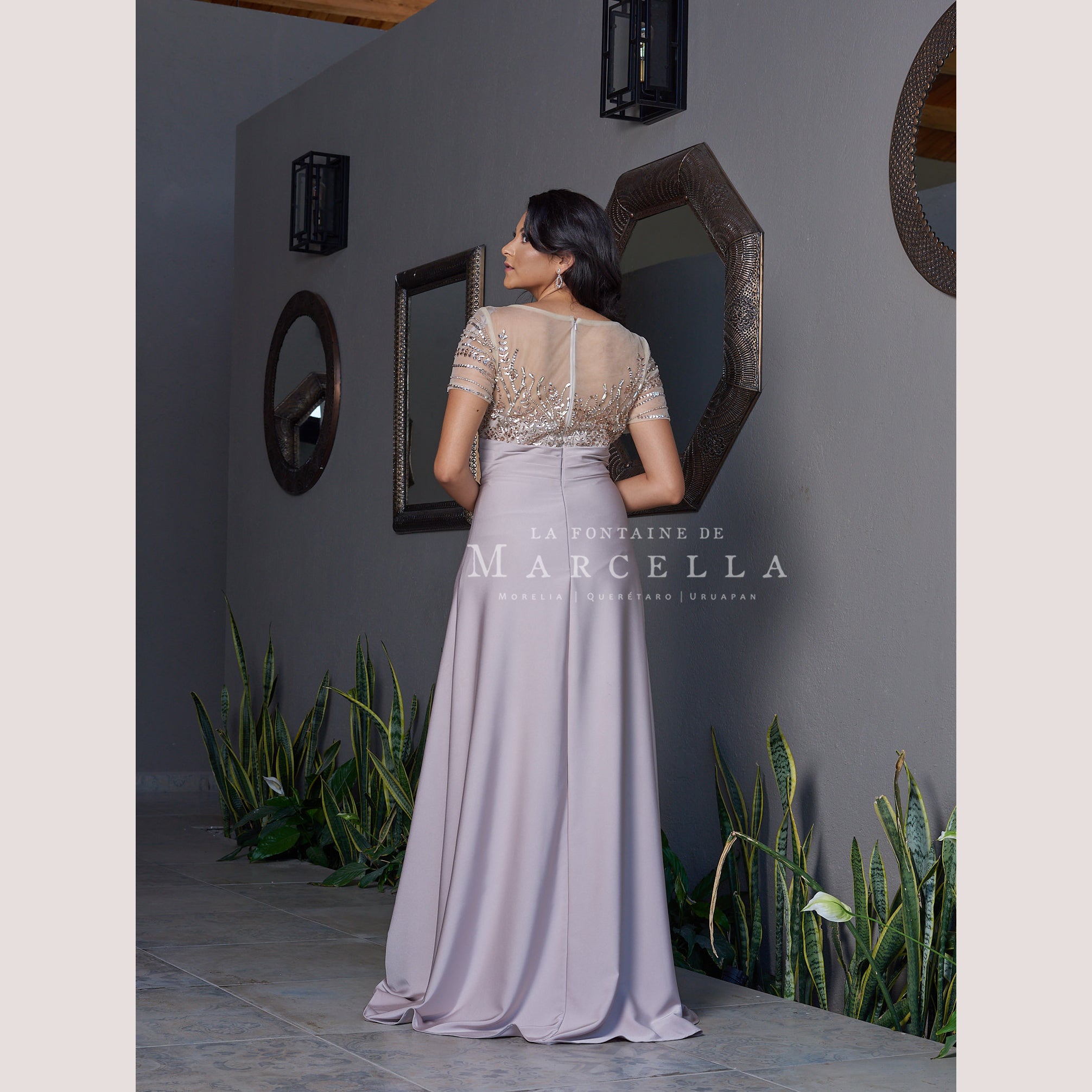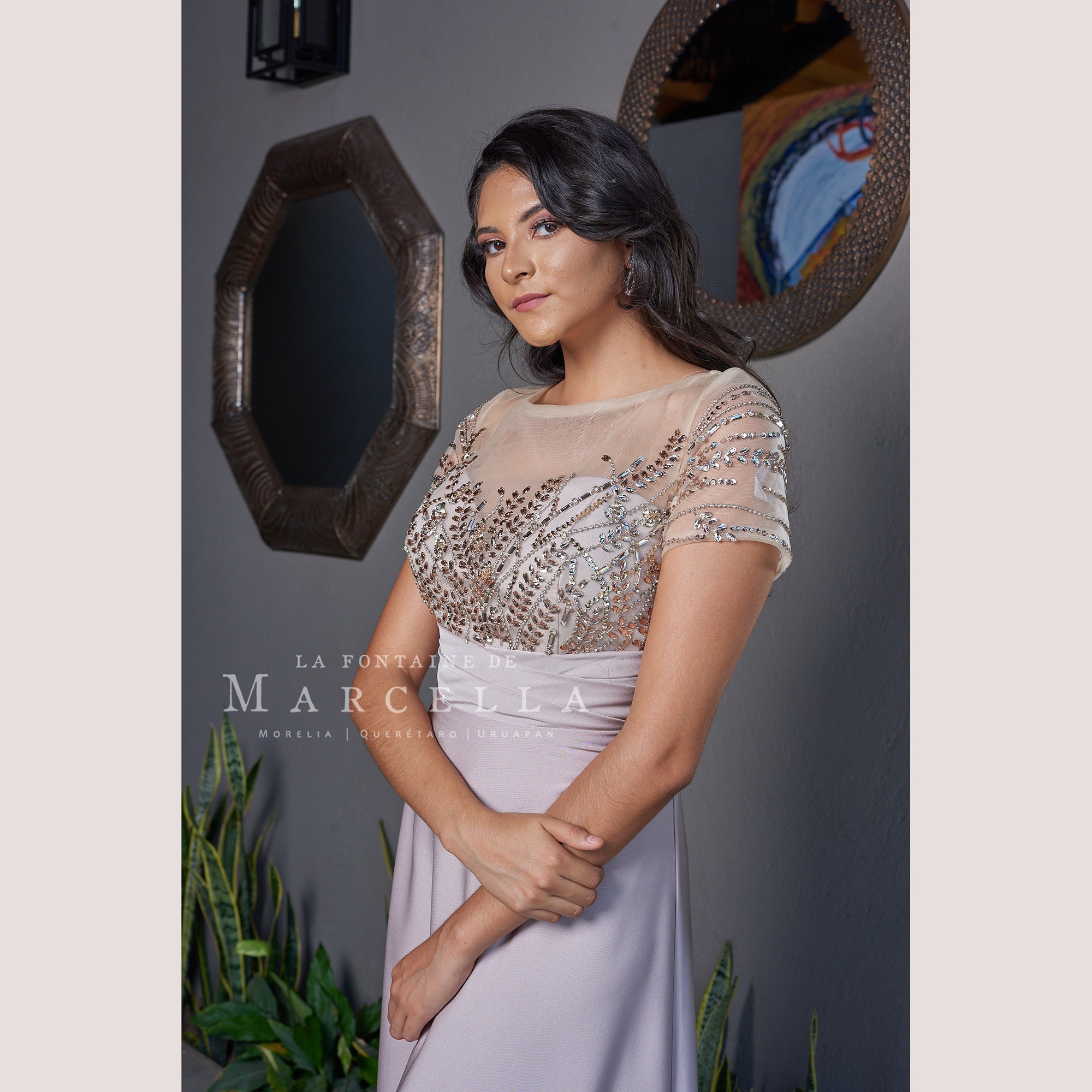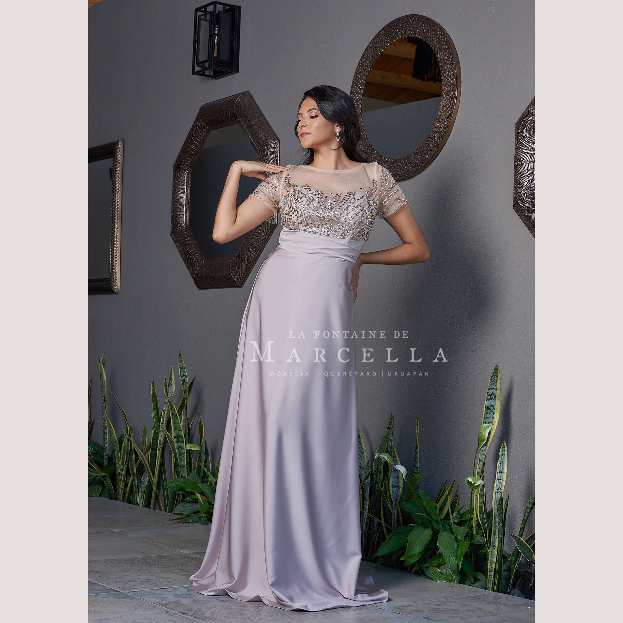 Vestido corte recto con manga corta hermosamente adornado con pedrería fantasía, ideal para cuerpos tipo Reloj de Arena y Manzana.Leer más