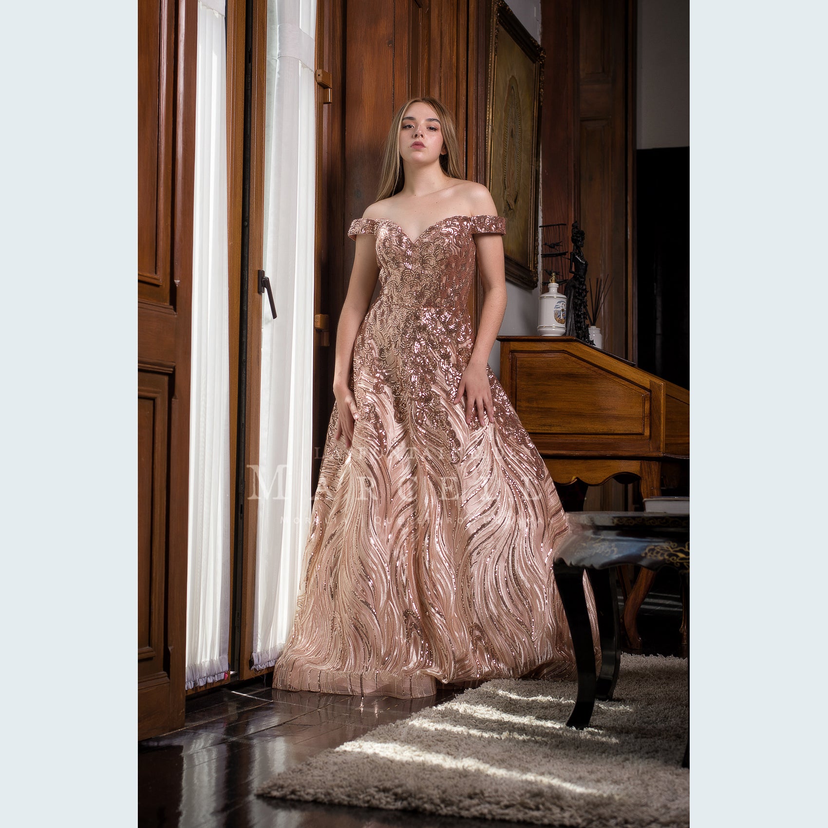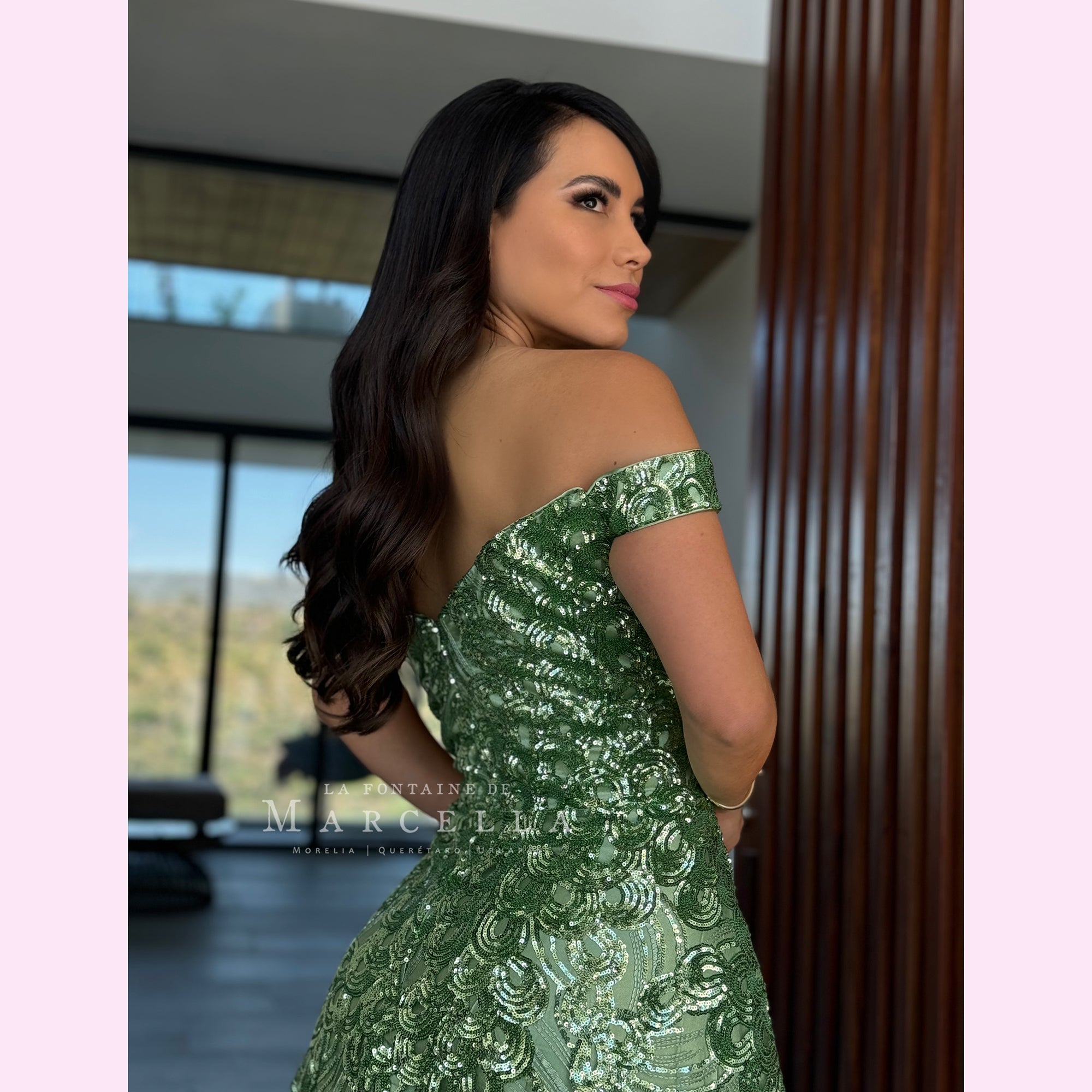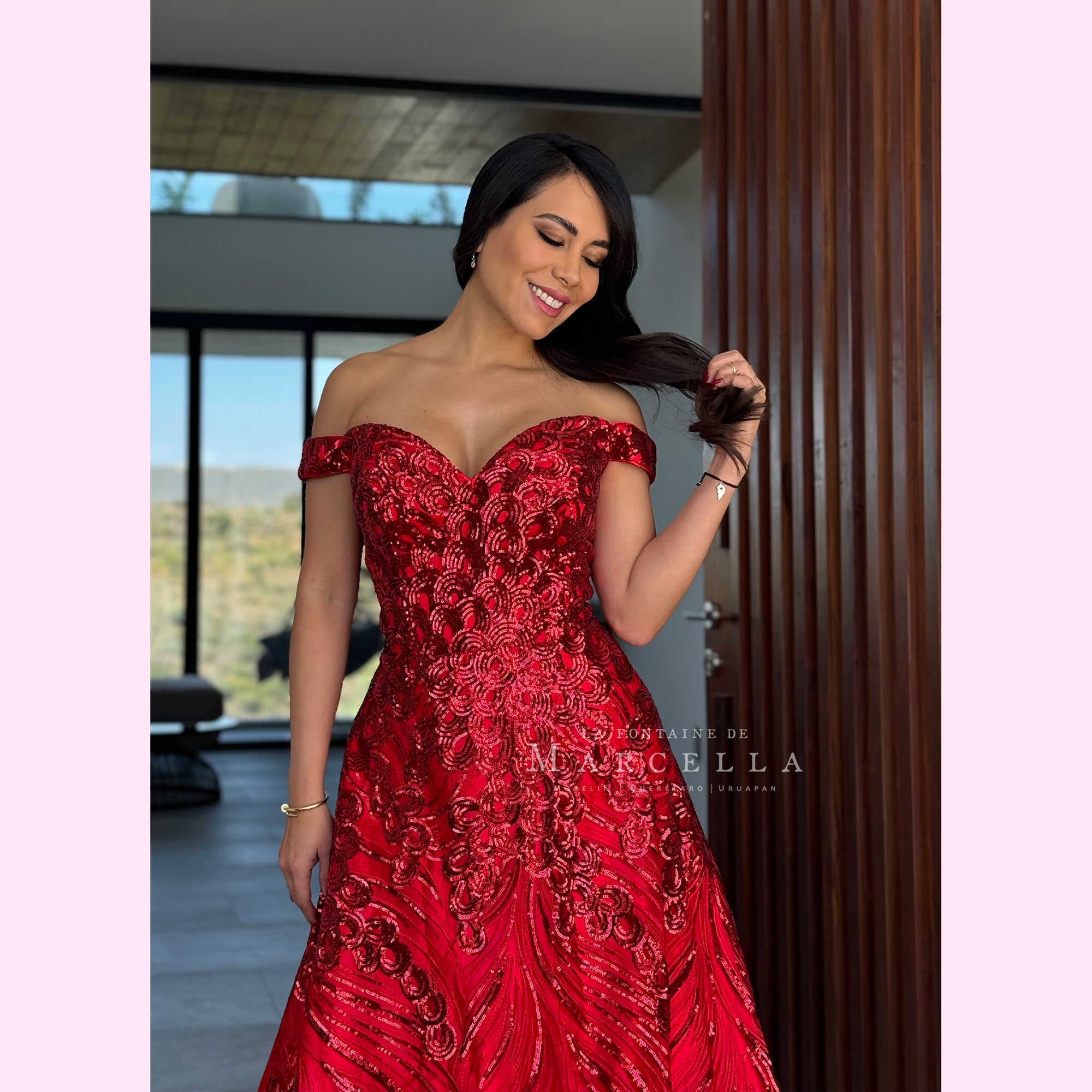 Vestido corte princesa con manga de ojal y adornado completamente por lentejuelas, recomendado para cuerpos tipo Triangulo Invertido y Rectángulo. Este modelo se encuentra en producción, para mas información favor de preguntar via redes sociales*Leer más