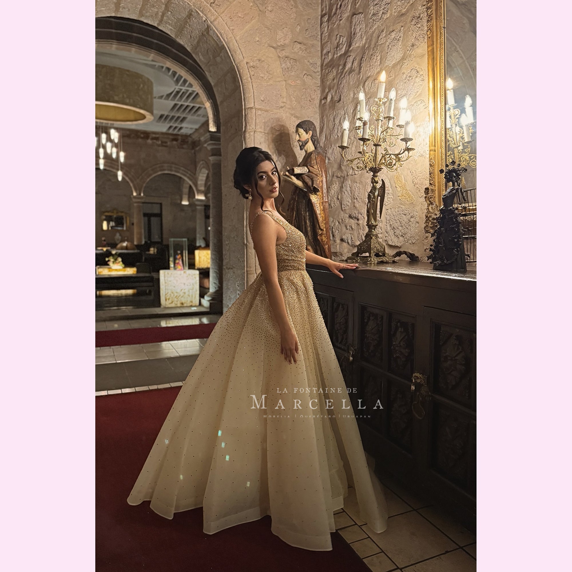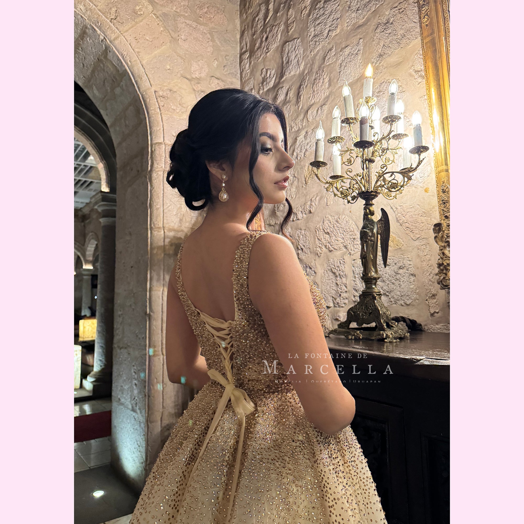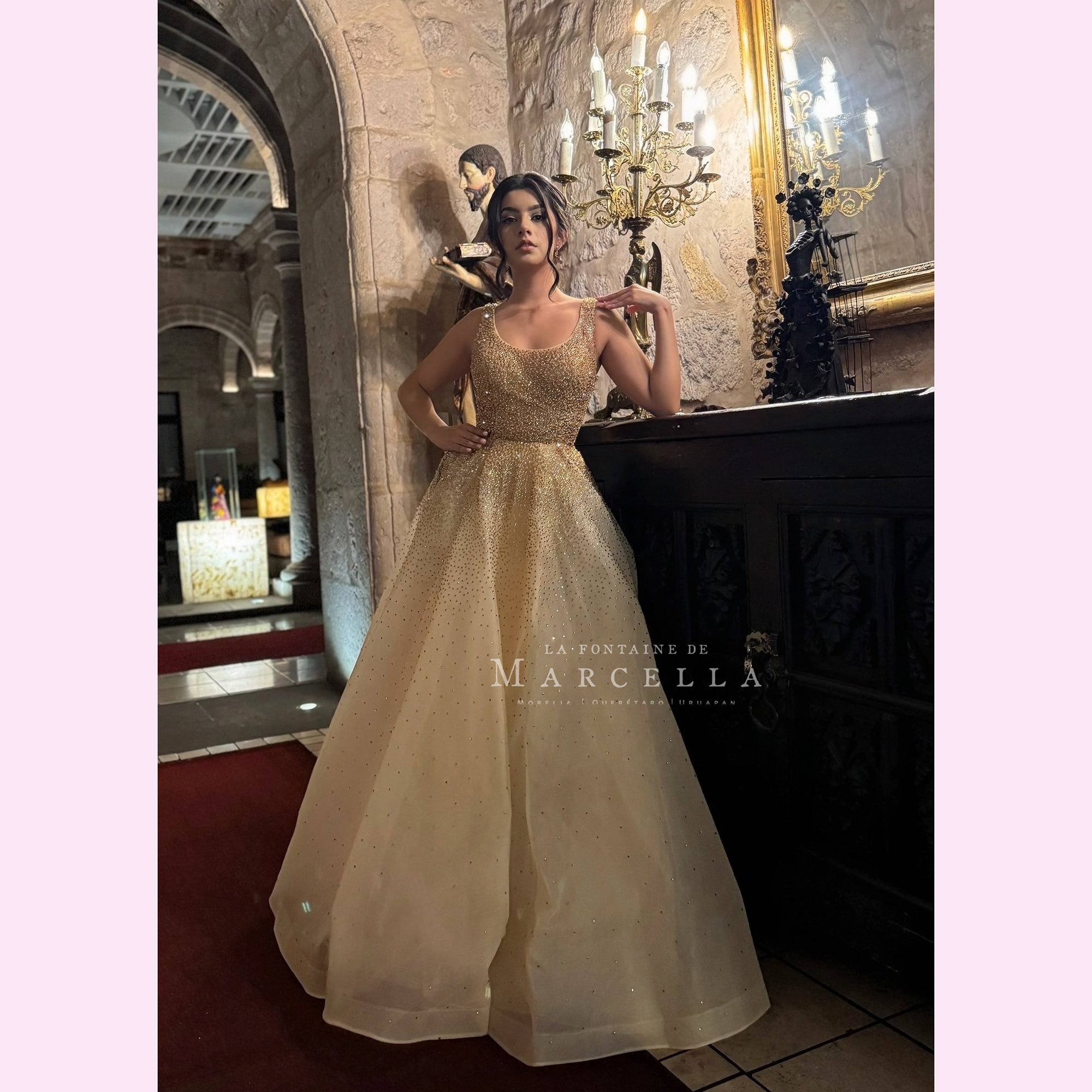 Vestido largo corte princesa de tirante grueso adornado con pedrería de fantasía, es recomendado para cuerpos tipo Triangulo Invertido y Rectángulo.  PIEZA UNICA*Leer más