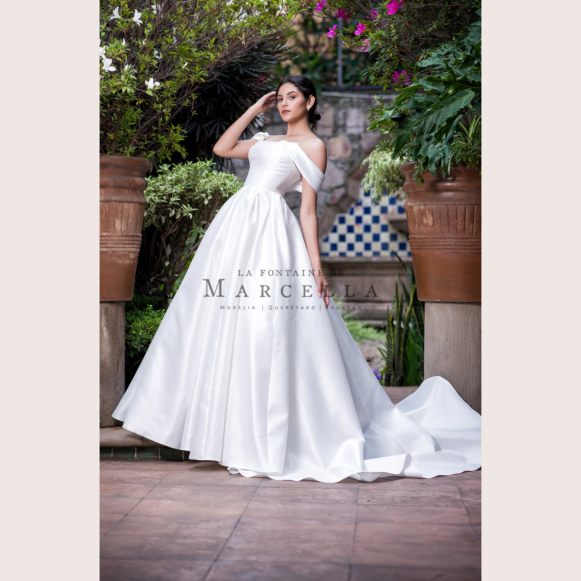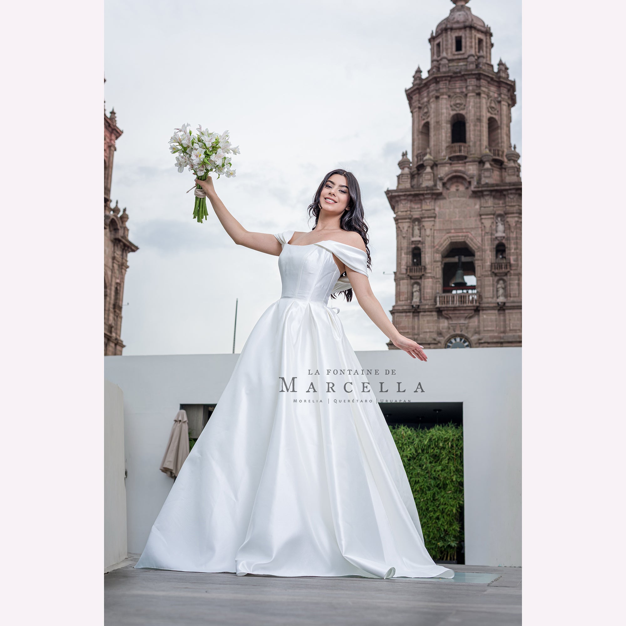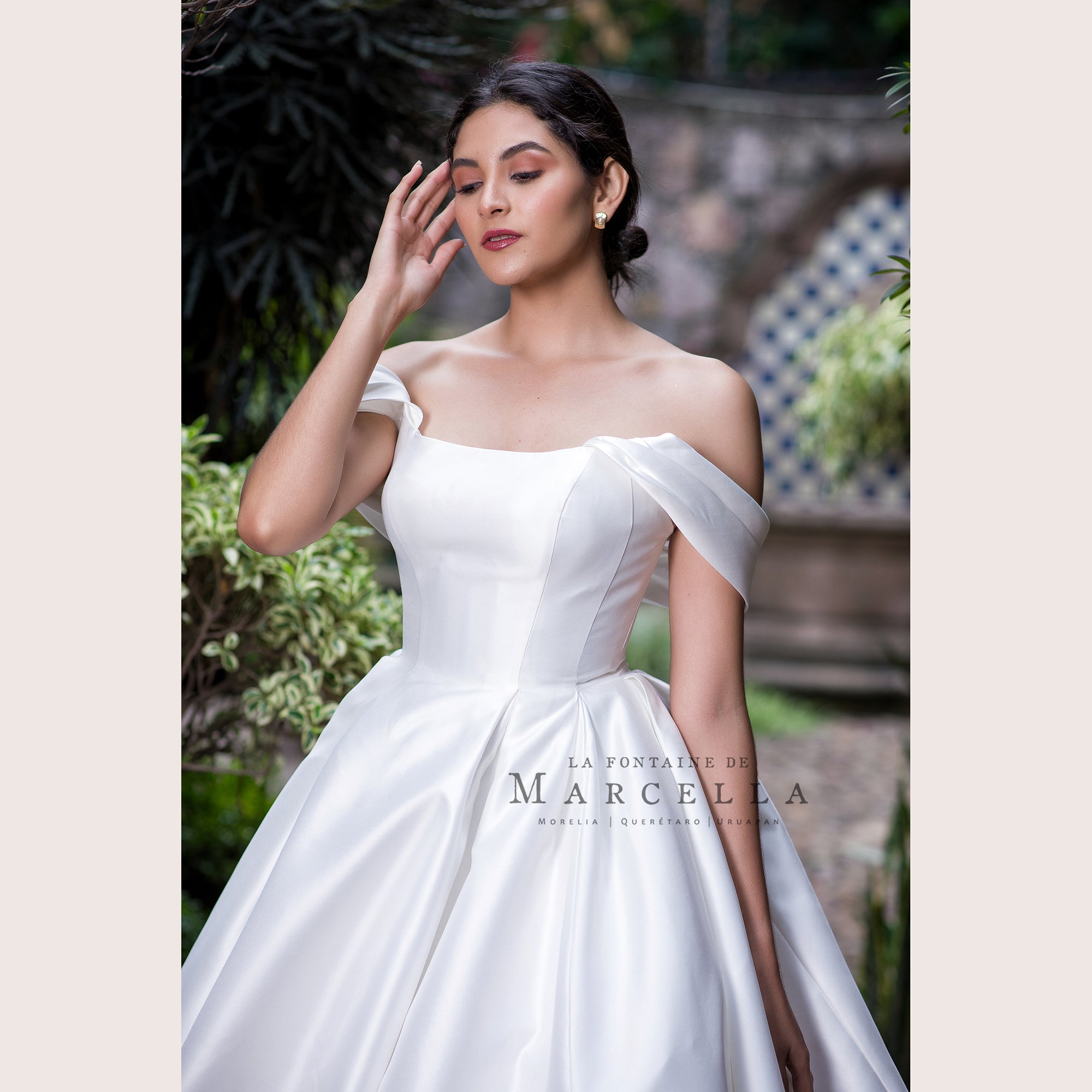 Vestido de novia corte princesa con manga de ojal, de tela gruesa es recomendado para cuerpos tipo Triangulo Invertido, Manzana y Pera.
