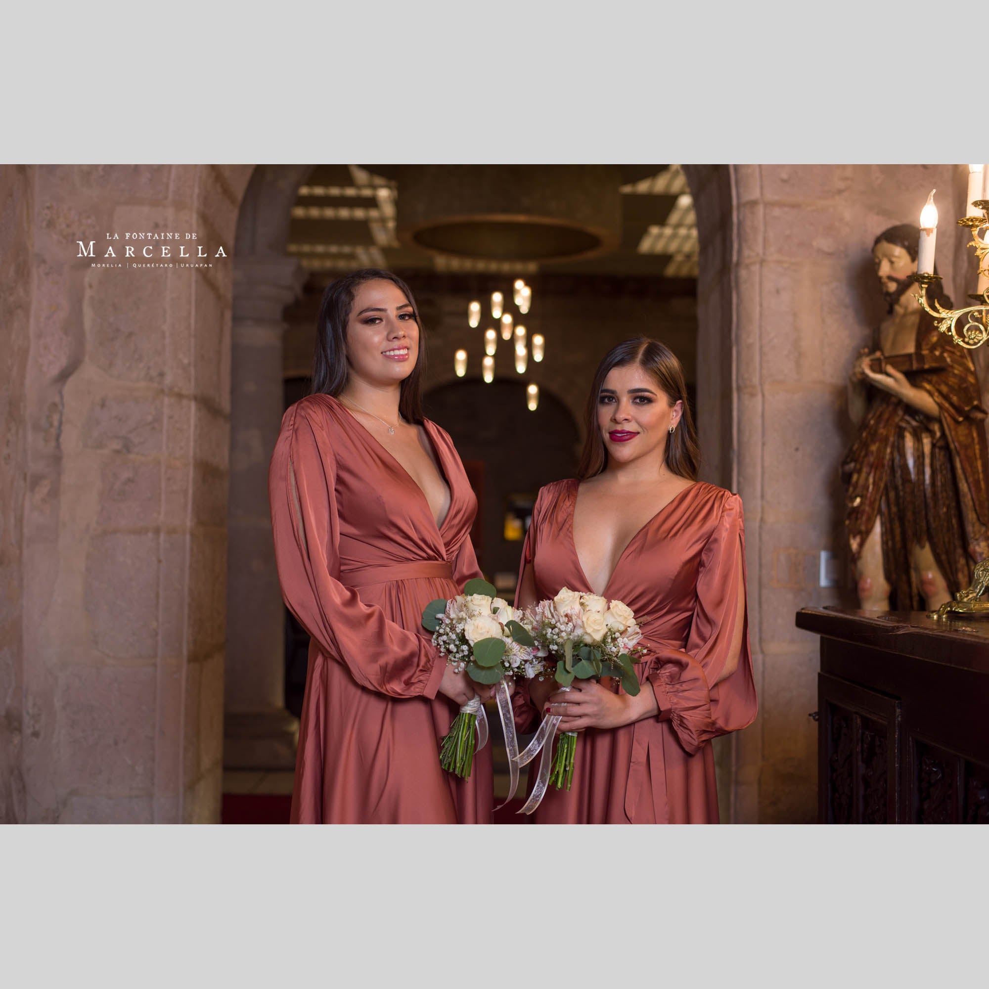 Vestido de manga larga y escote en V, con tela brillante y abertura en la pierna se recomienda para cuerpos tipo Manzana y Rectángulo.Leer más
