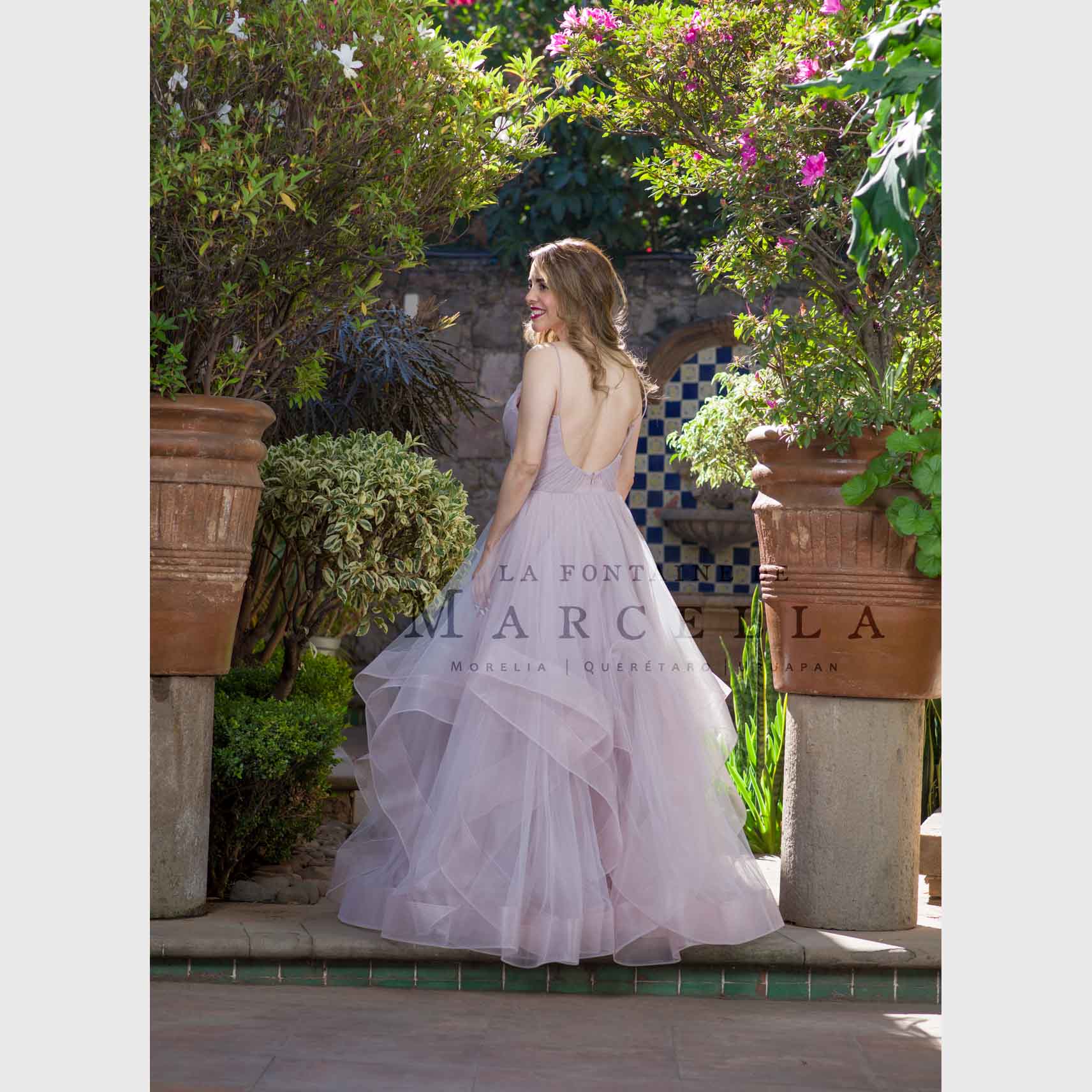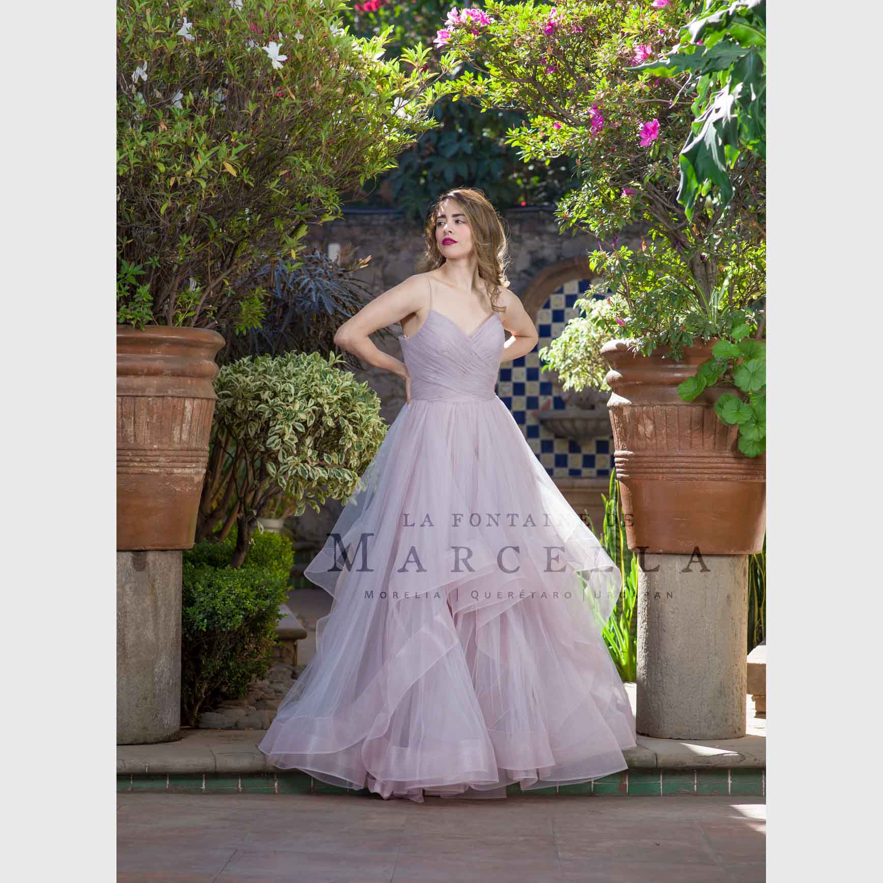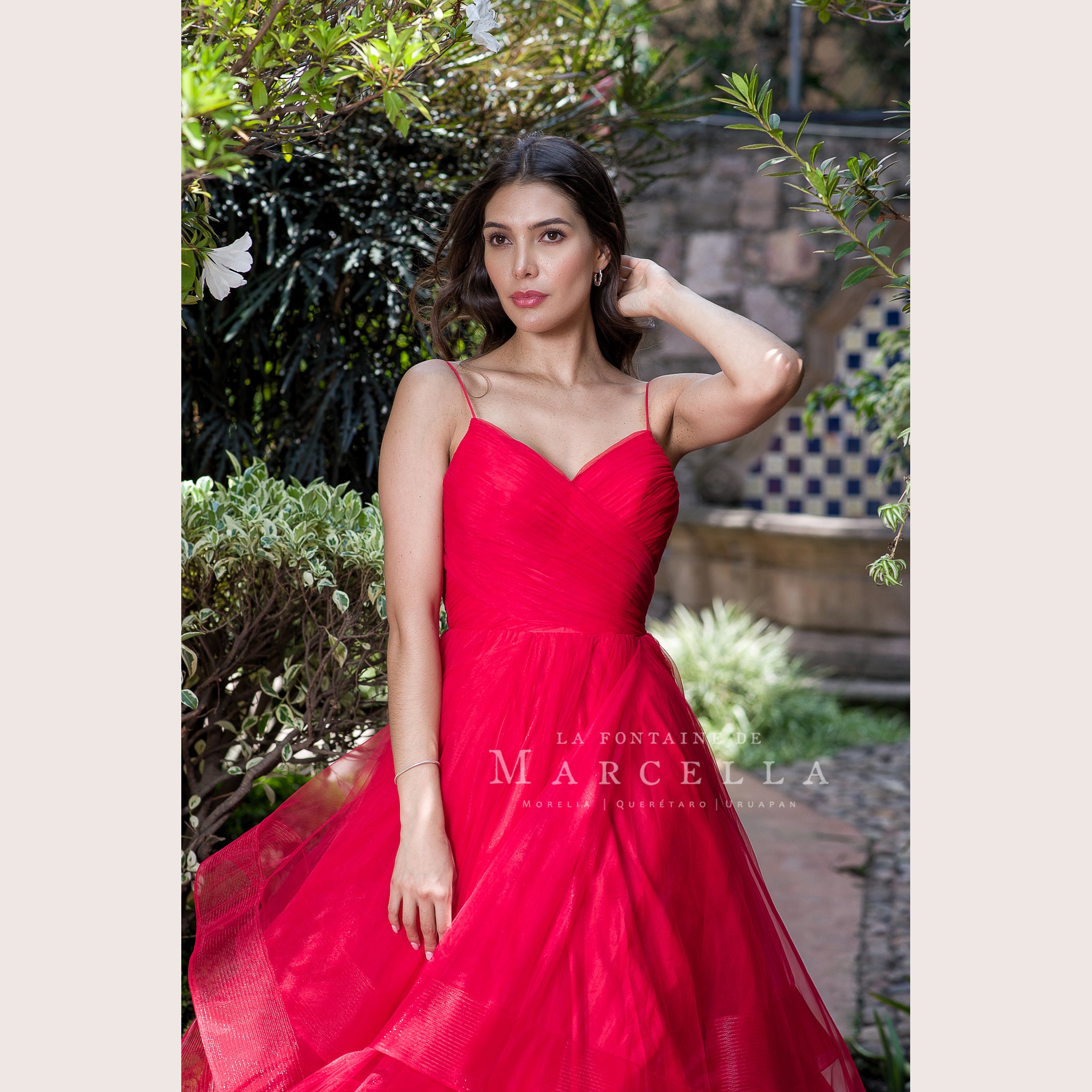 Vestido largo con detalle de pliegues, ideal para cuerpos tipo triangulo invertido y rectángulo. *Los accesorios se venden por separado. Leer más
