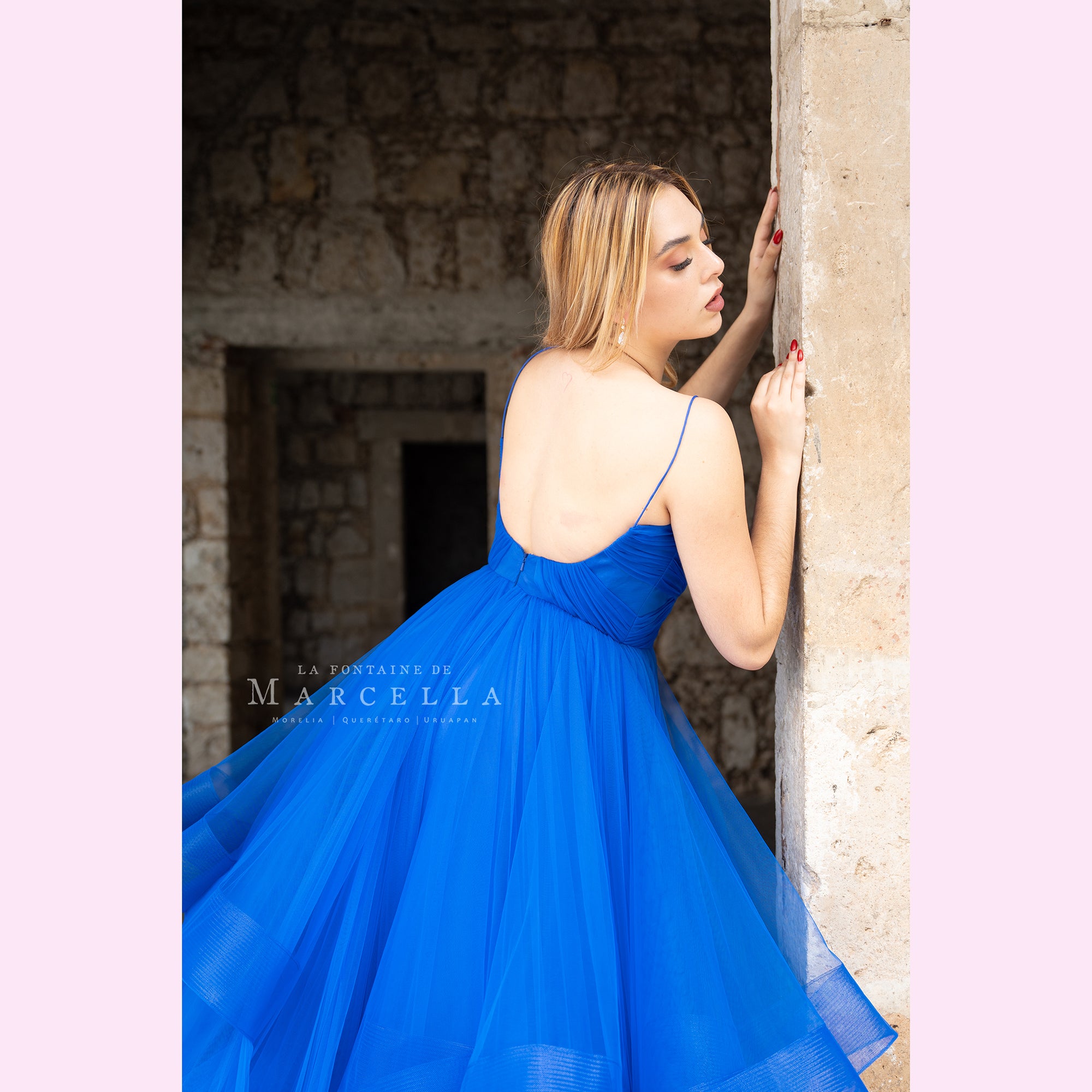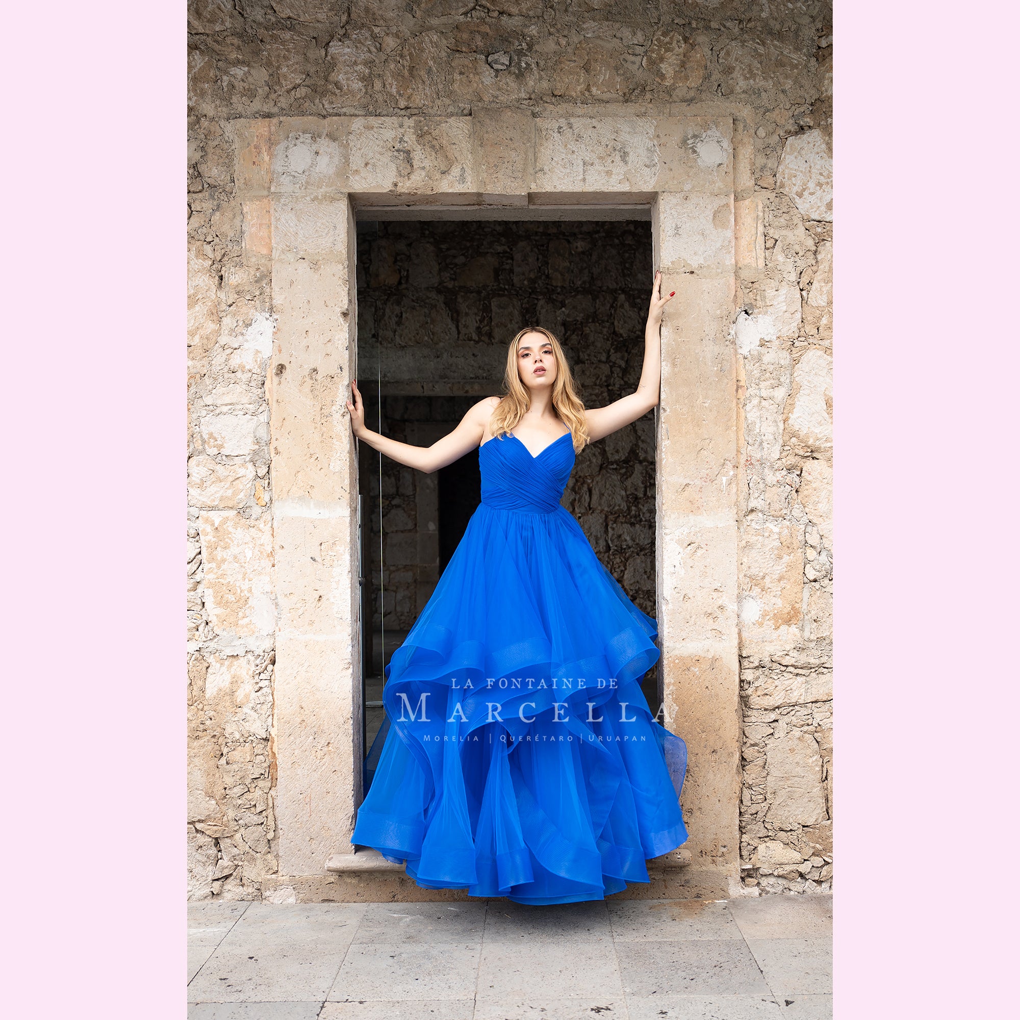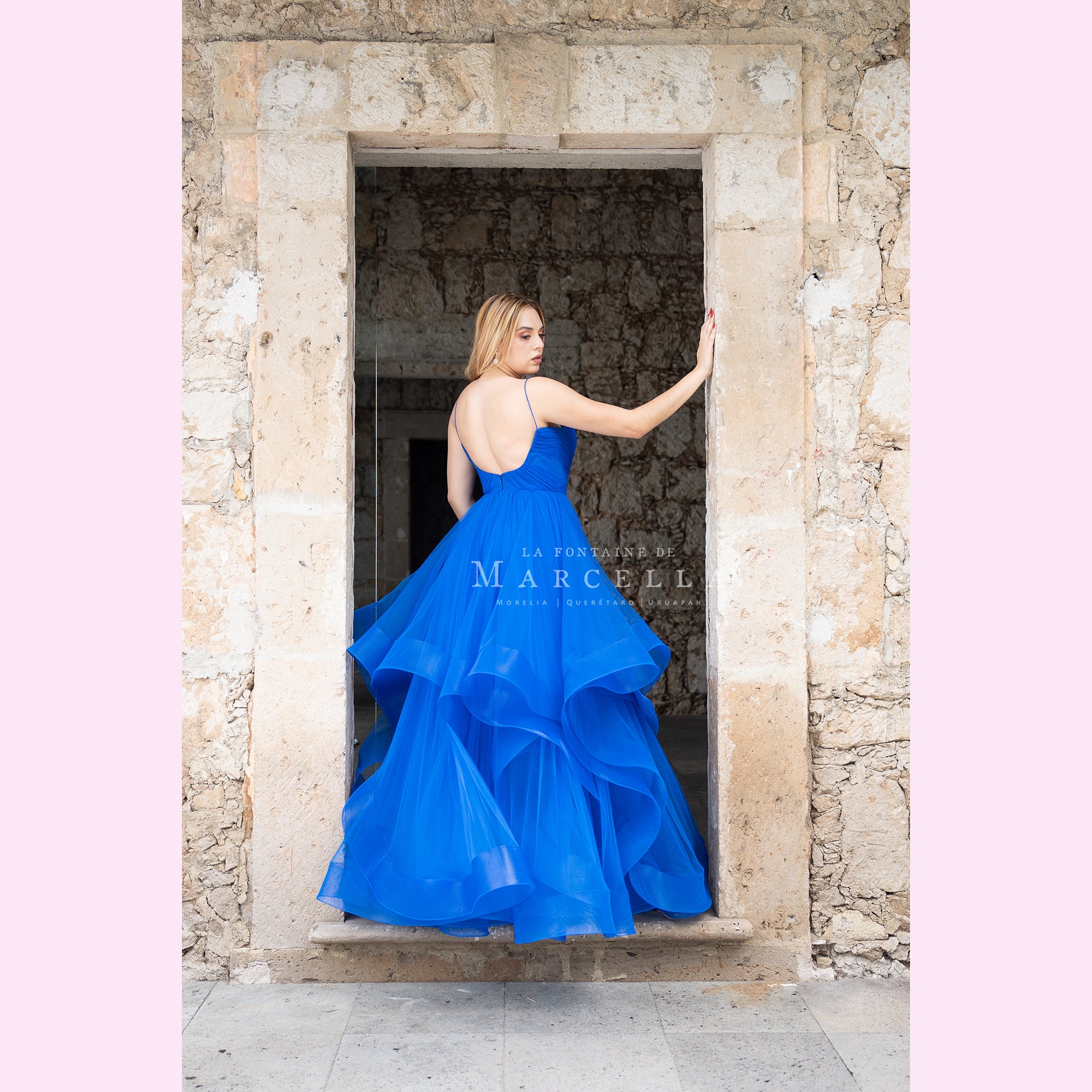 Vestido largo con detalle de pliegues, ideal para cuerpos tipo triangulo invertido y rectángulo. *Los accesorios se venden por separado. Leer más