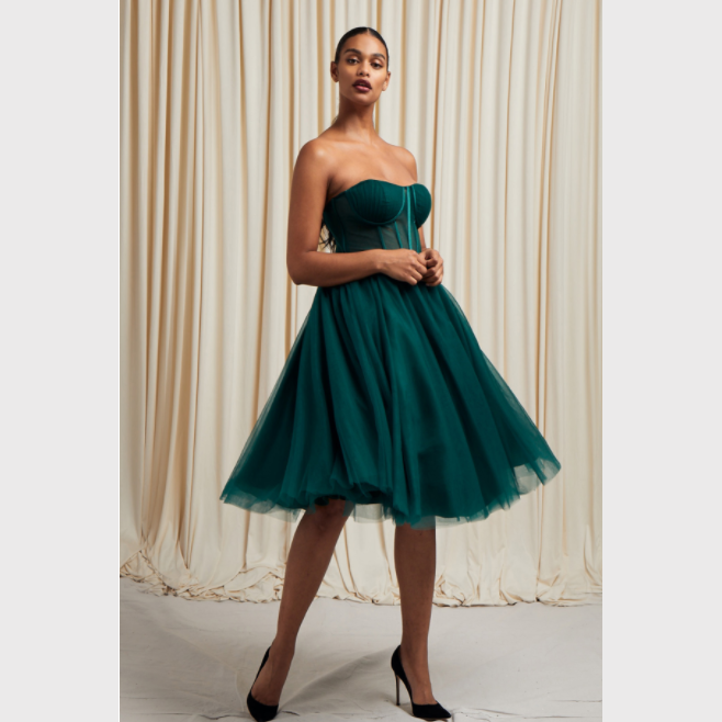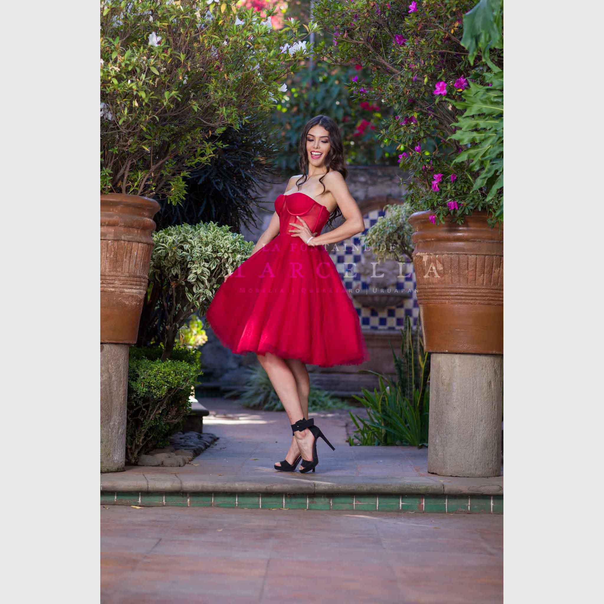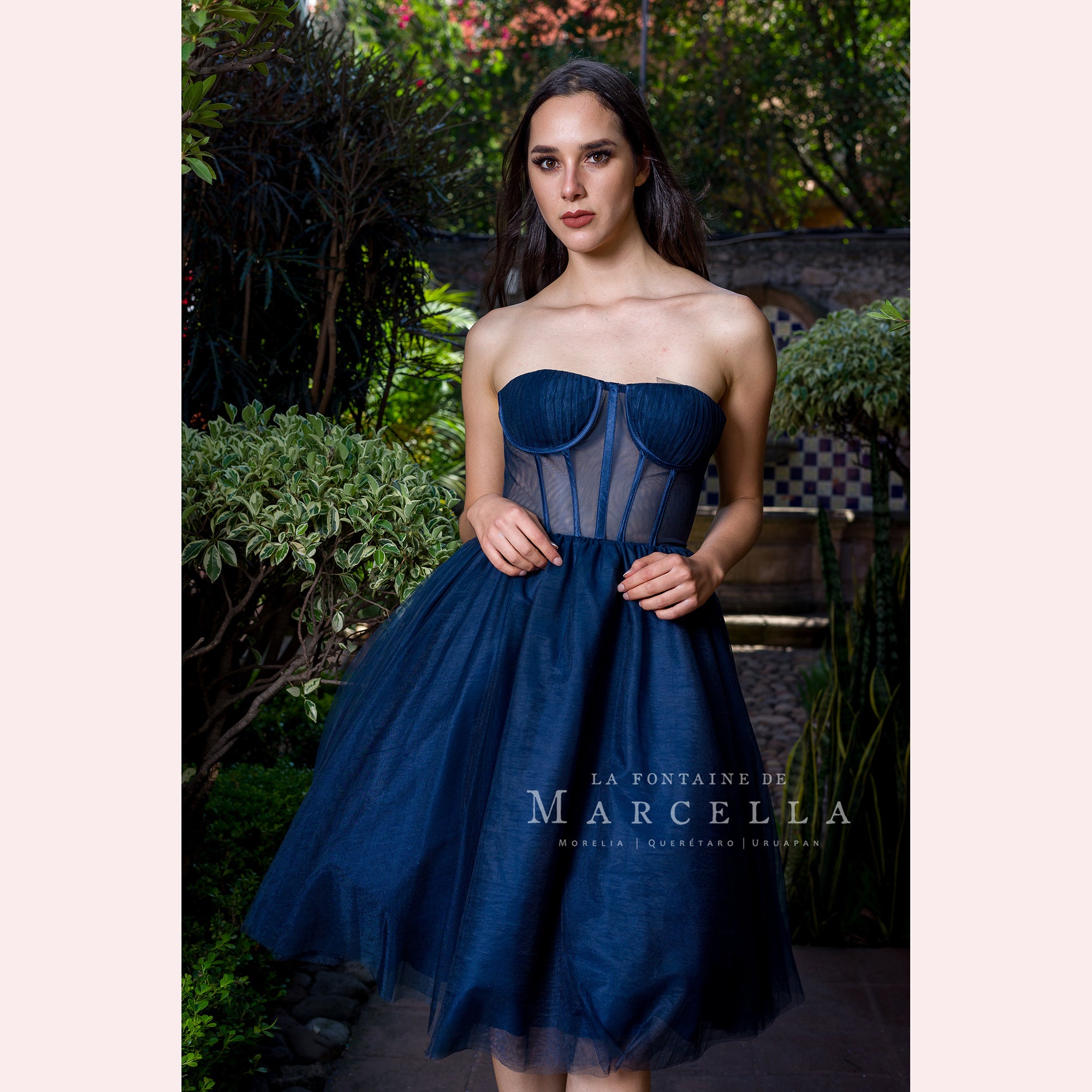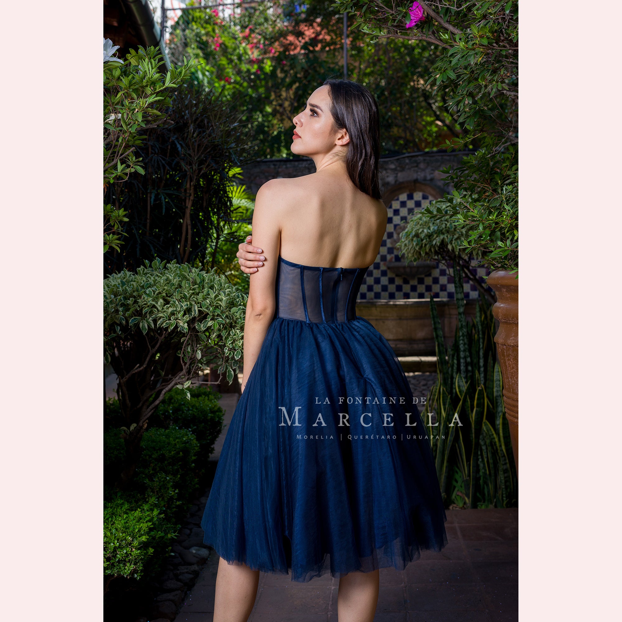Vestido corto de tul con varilla y transparencia en la parte superior, recoemndado para cuerpos tipo Rectangulo y Triangulo Invertido.Leer más