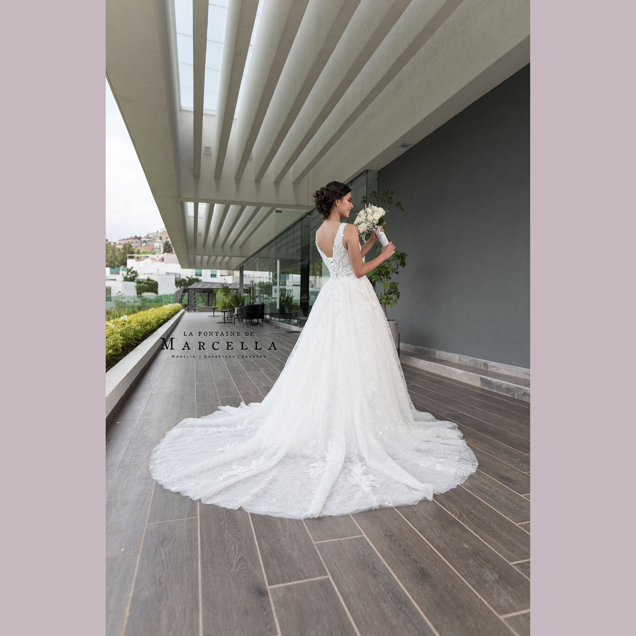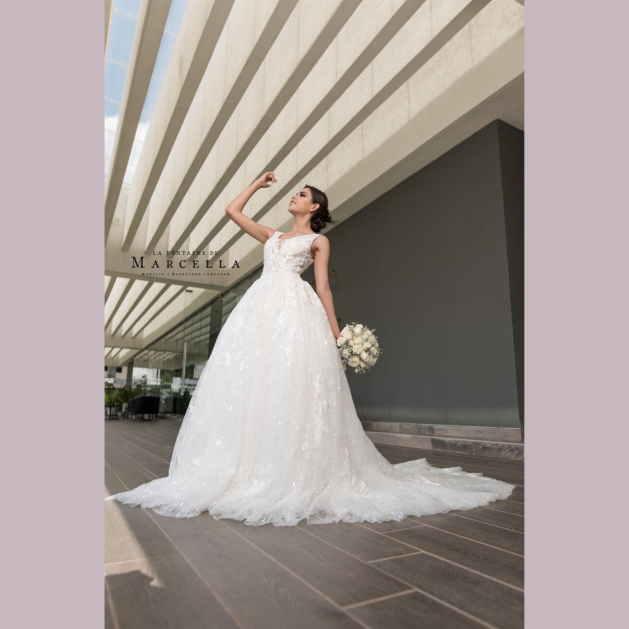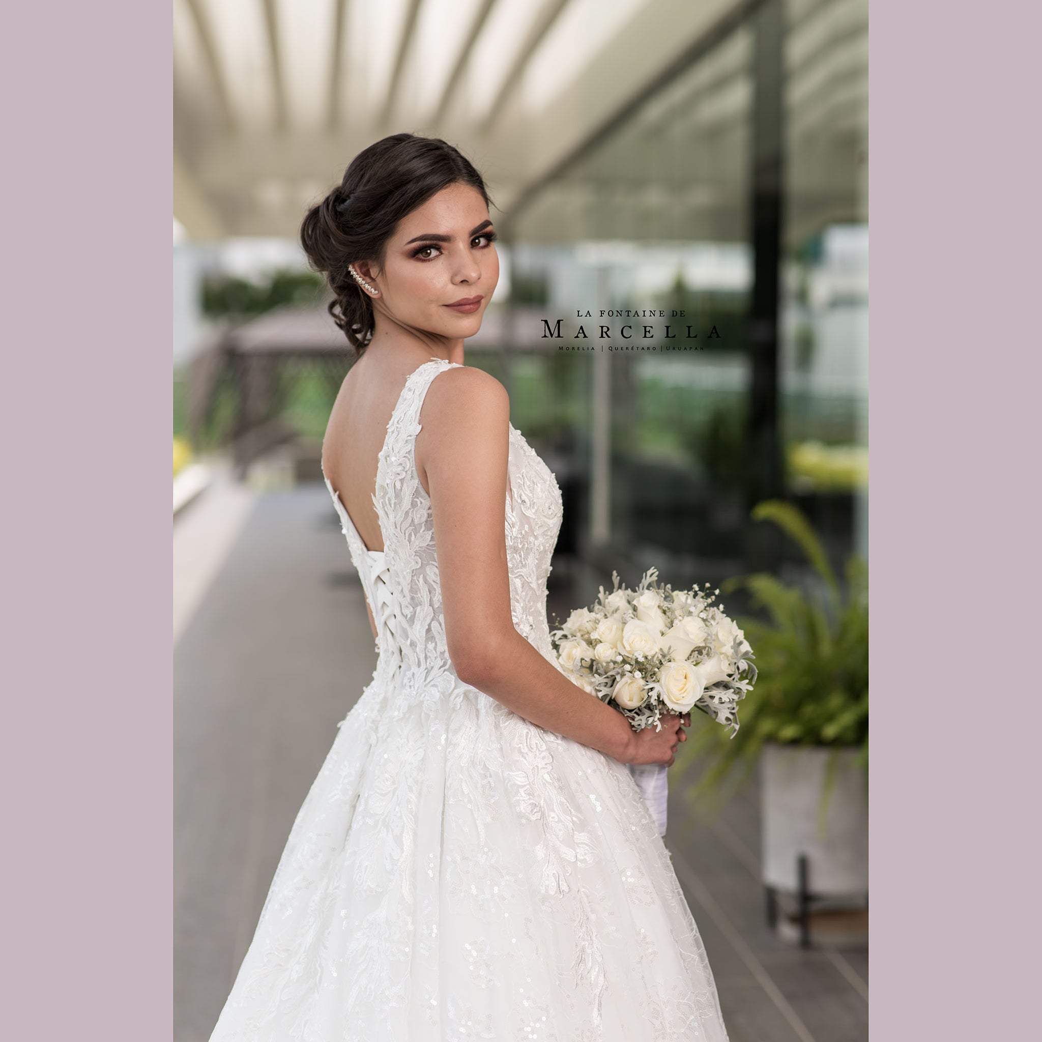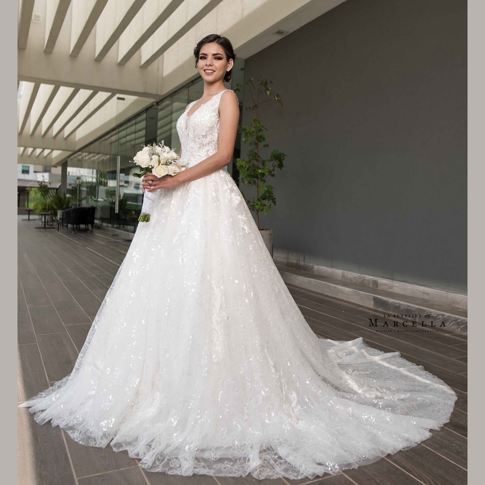 Vestido de novia de tirante grueso y encaje, ideal para cuerpos tipo rectángulo, triángulo invertido y reloj de arena. *Los accesorios se venden por separado. Leer más