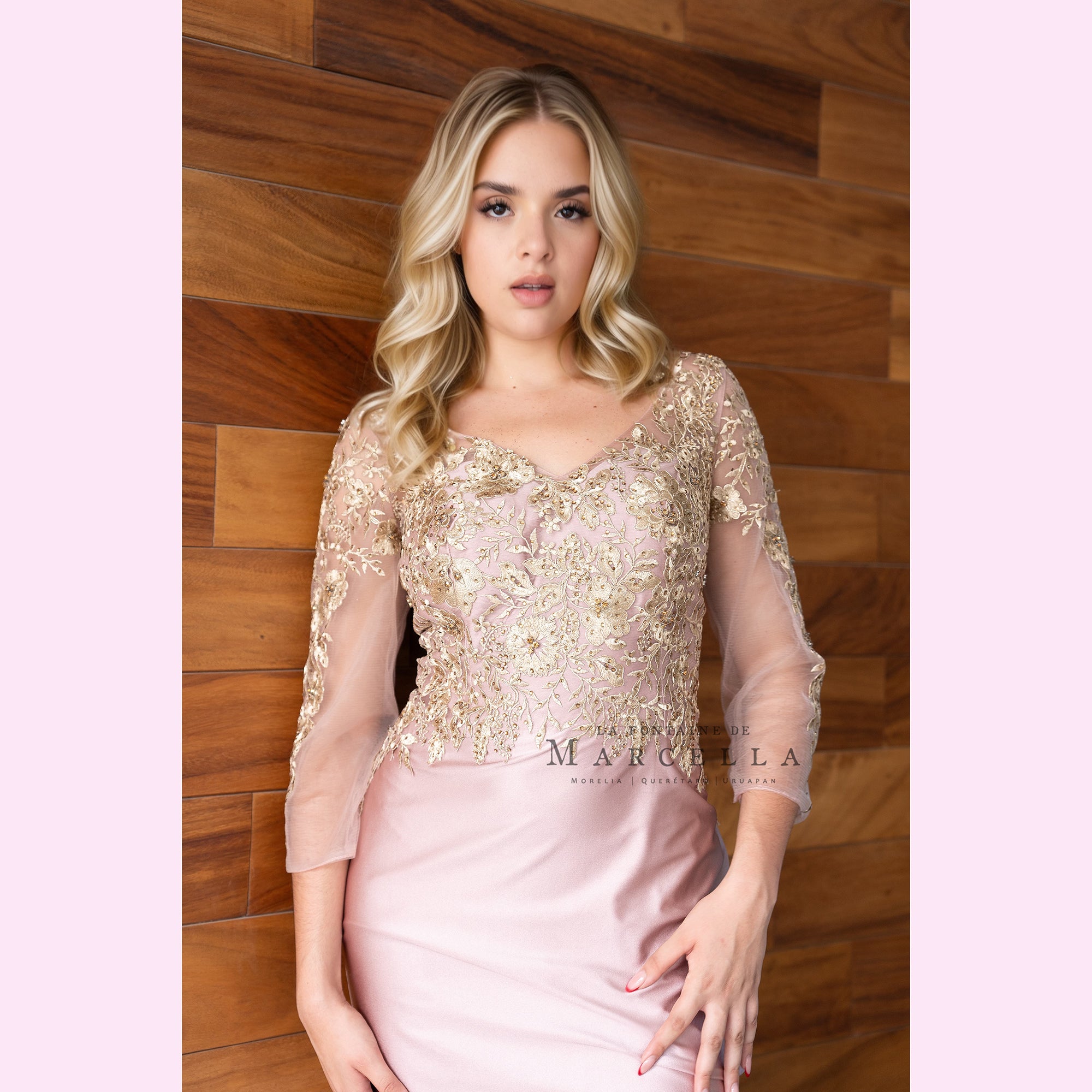 Vestido corte sirena con manga larga, adornado con aplicación en la parte superior es recomendado para cuerpos tipo Pera y Rectángulo.  Este producto cuenta con piezas limitadas, para mas información comunicarse vía redes sociales* Leer más