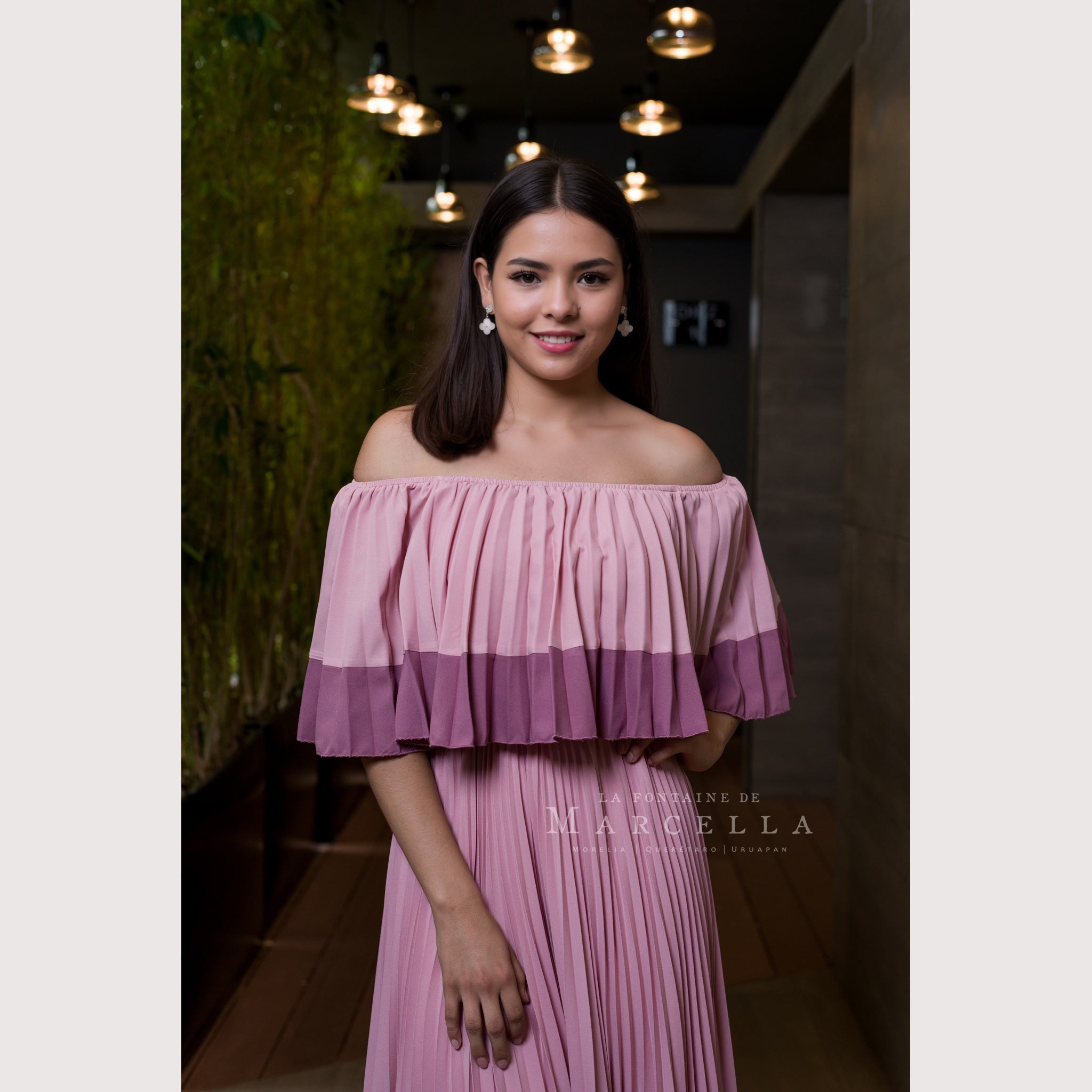Vestido largo de manga al hombro, tablones delgados y a doble tono de color. Leer más