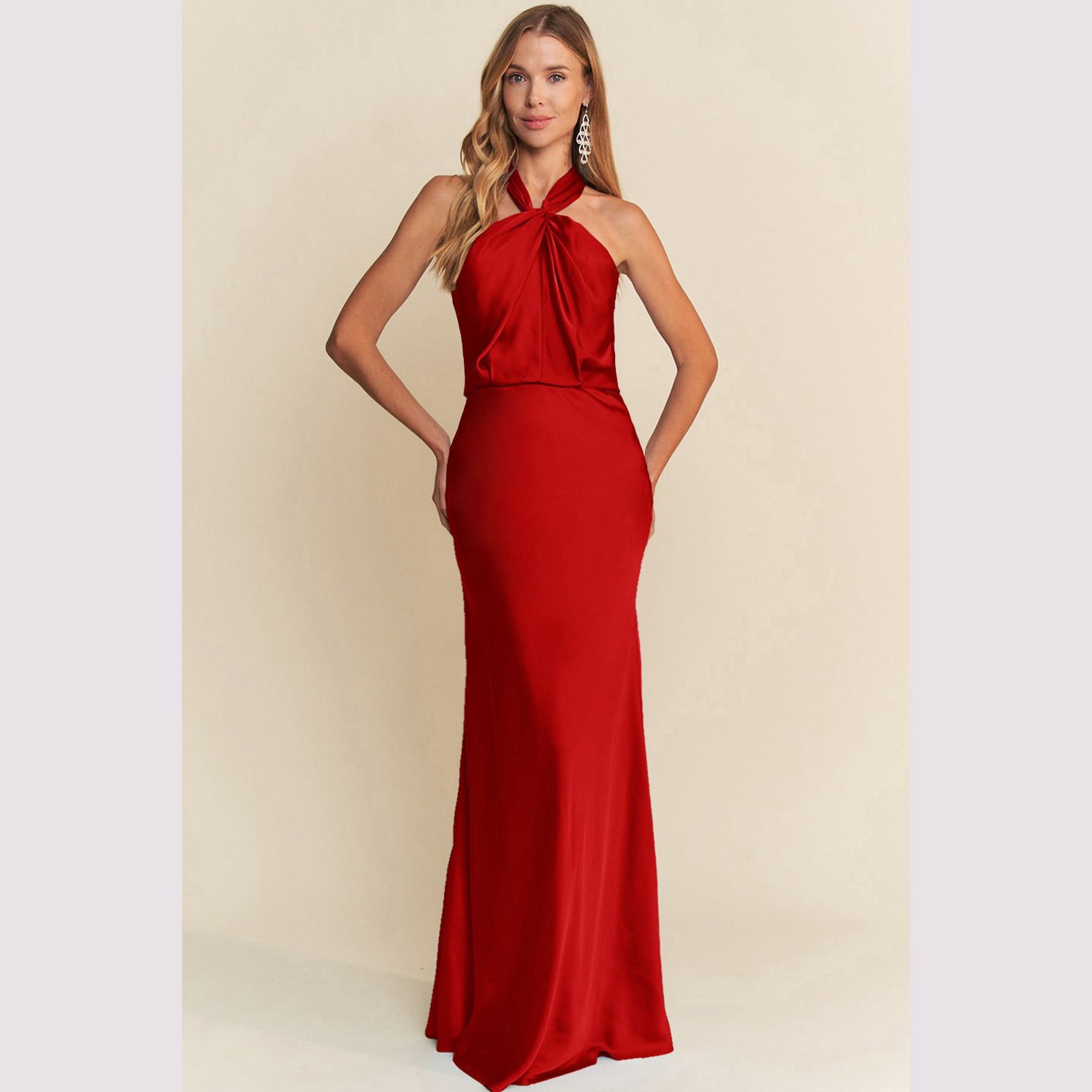 Vestido largo de cuello halter con corte recto, es recomendado para cuerpos tipo Pera y Rectángulo. Este modelo cuenta con piezas limitadas, para mas información favor de comunicarse vía redes sociales*Leer más