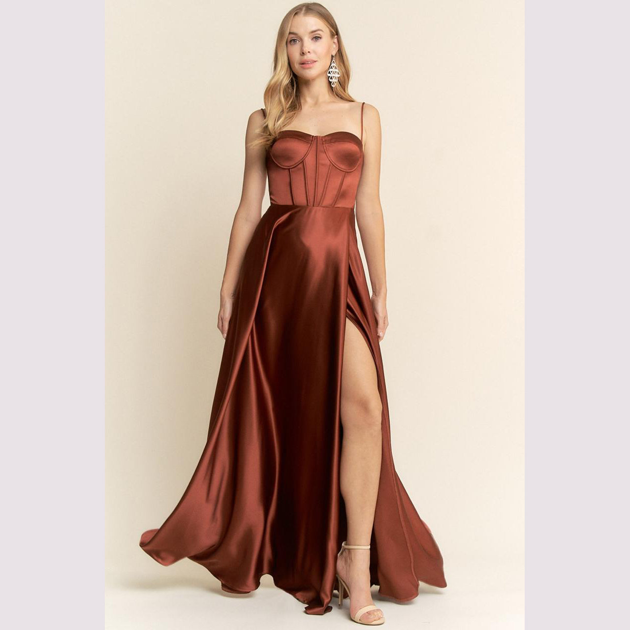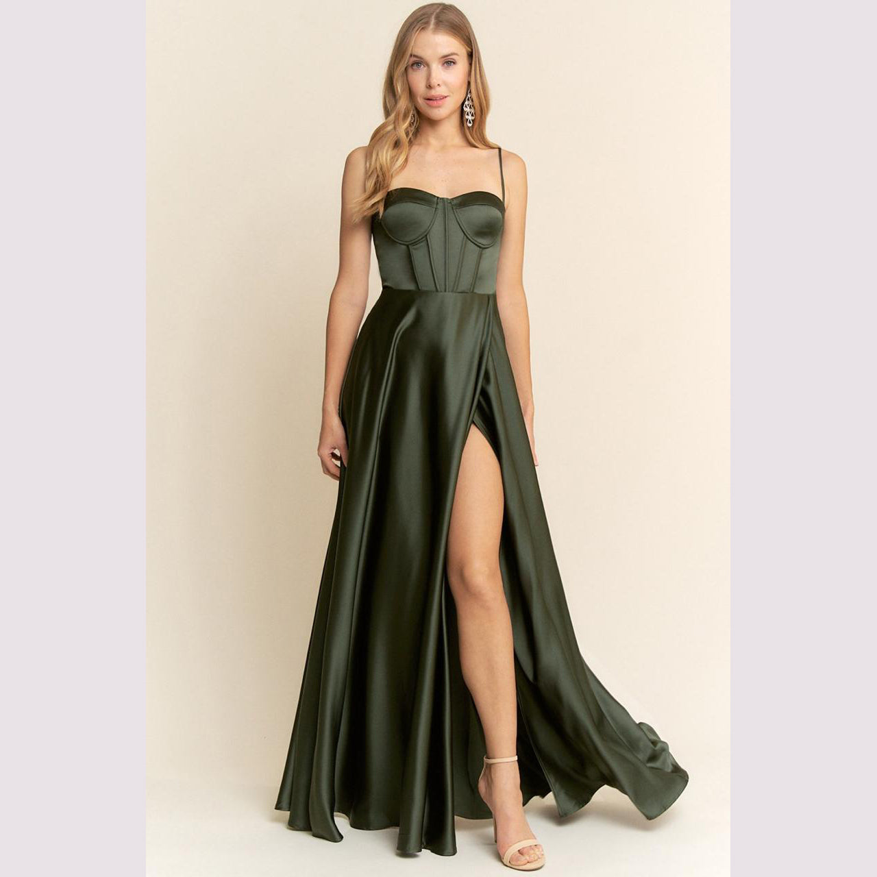 Vestido corte en A con espalda semi descubierta y escote corazón.Leer más