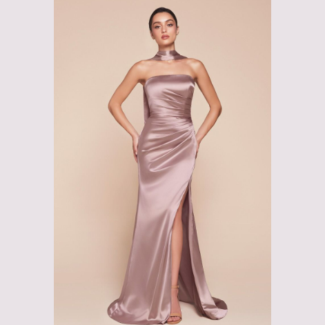 Vestido corte sirena, strapless con pashmina, es recomendado para cuerpos tipo Reloj de Arena y Pera.
