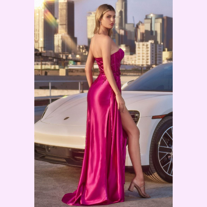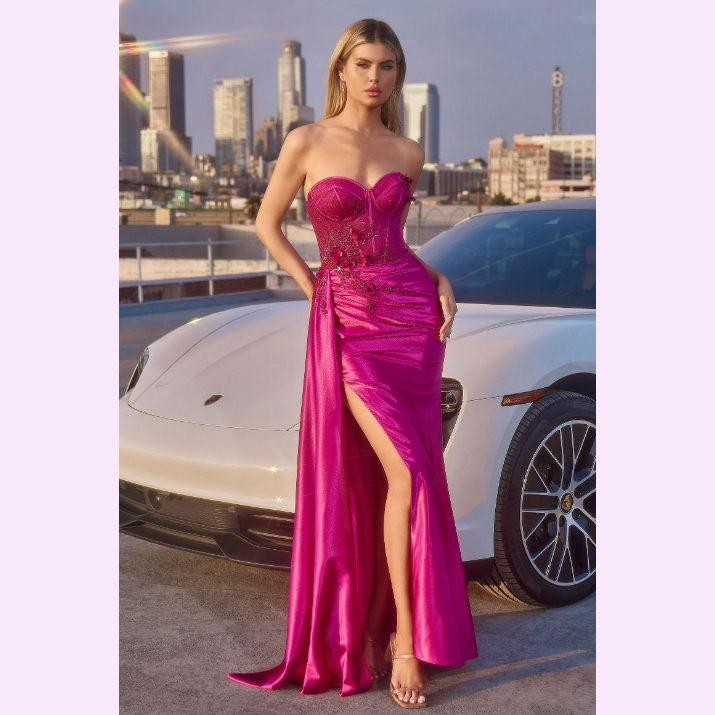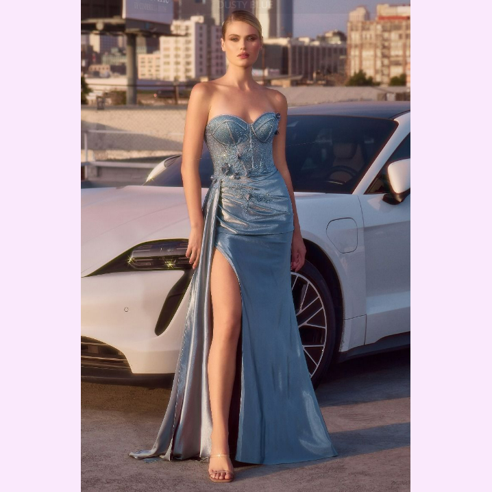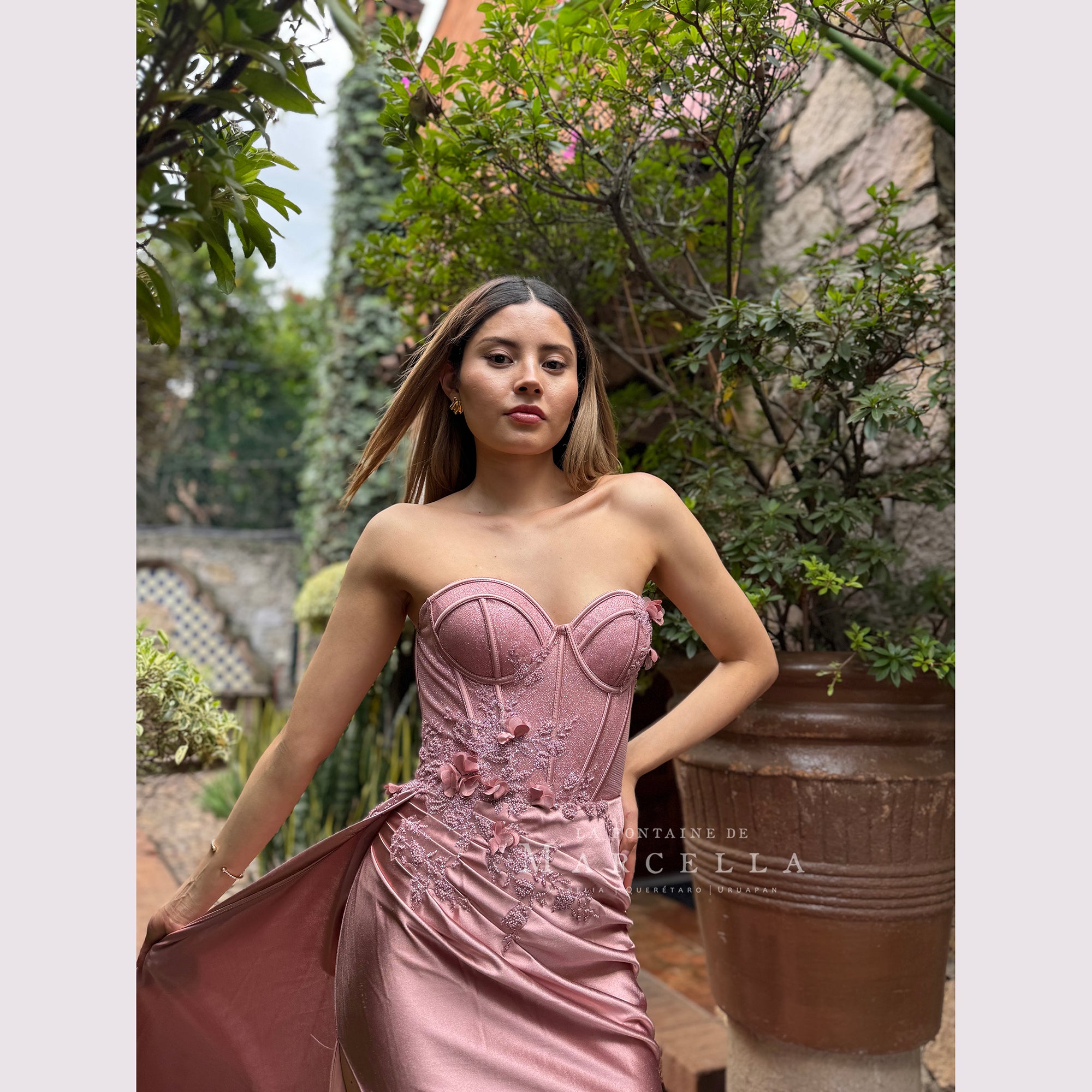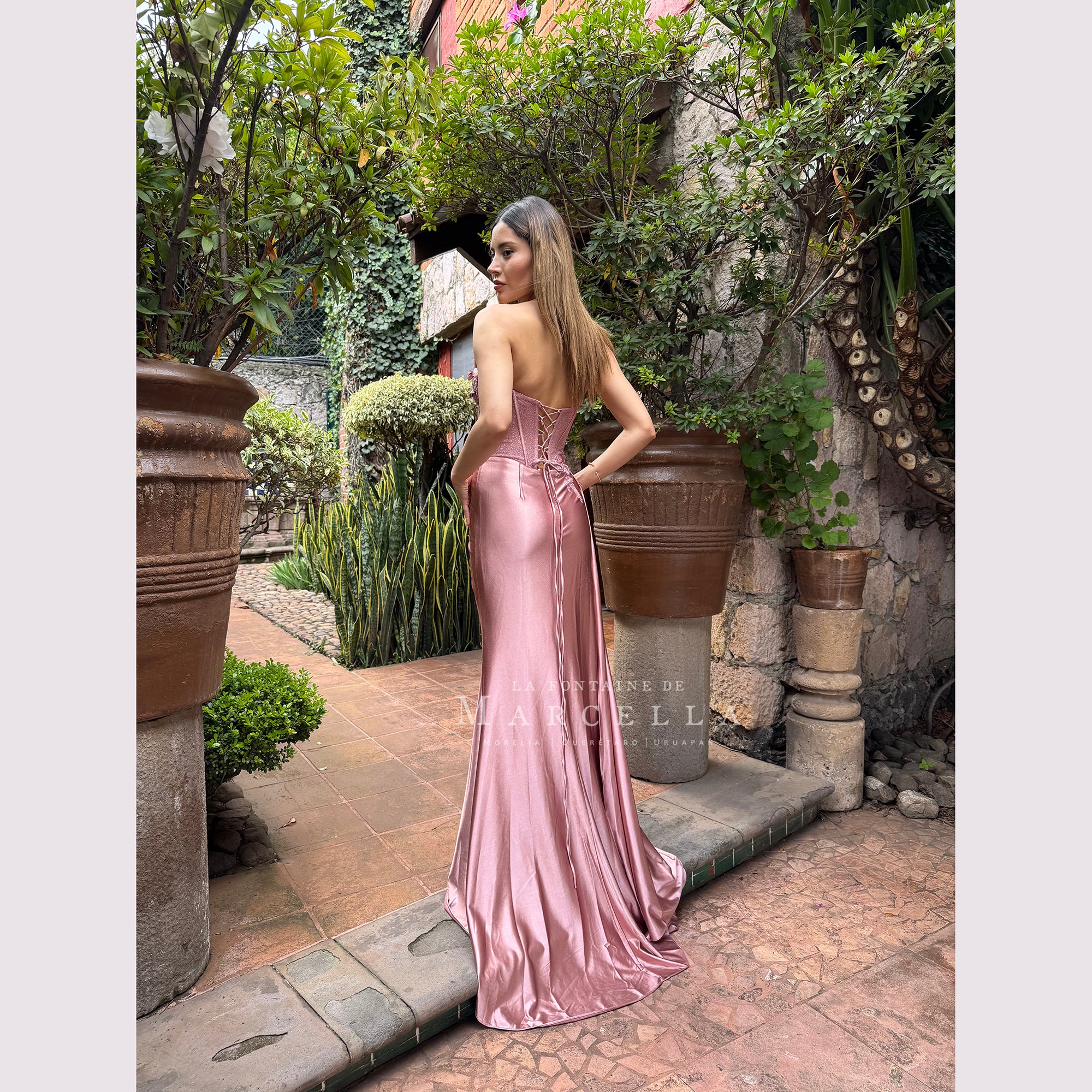 Vestido largo corte sirena con transparencia en la parte superior, es recomendado para cuerpos tipo Reloj de Arena y Pera.Leer más