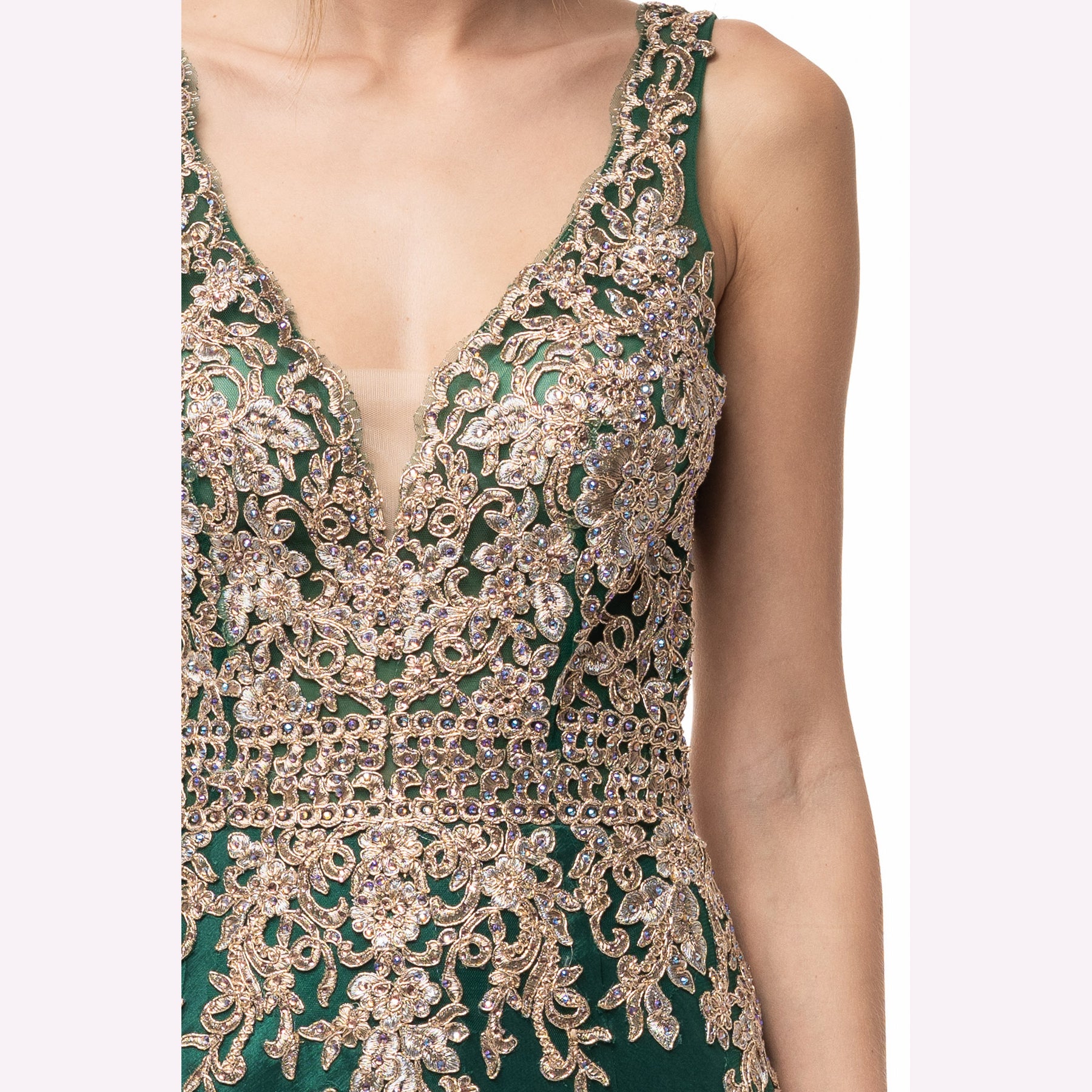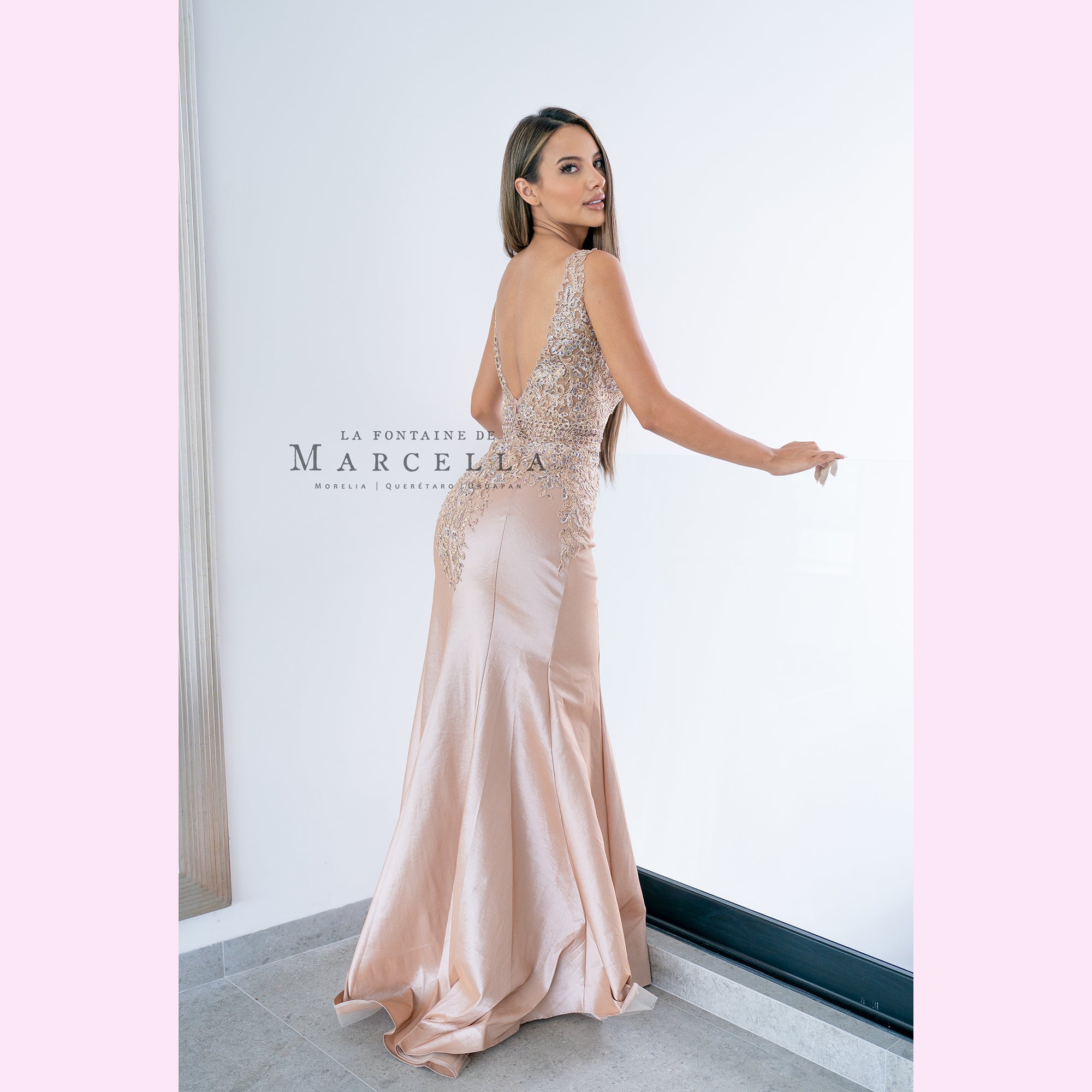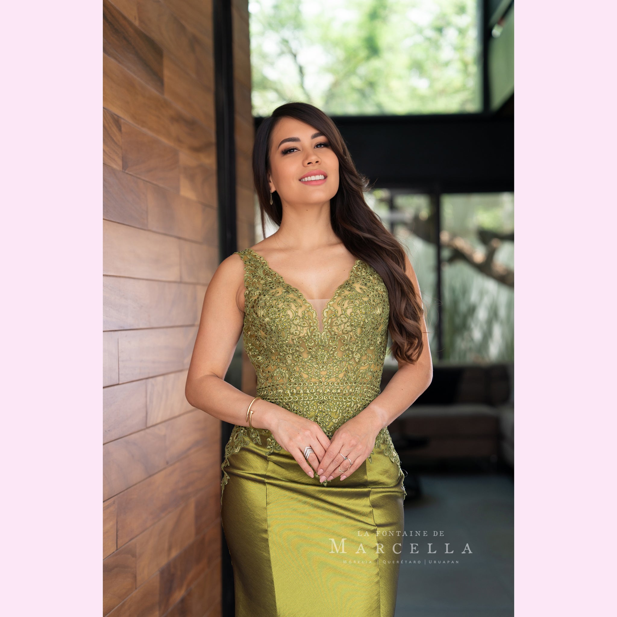 Vestido corte sirena con adorno de aplicación en la parte superior, recomendado para cuerpos tipo Reloj de Arena y Pera.Leer más