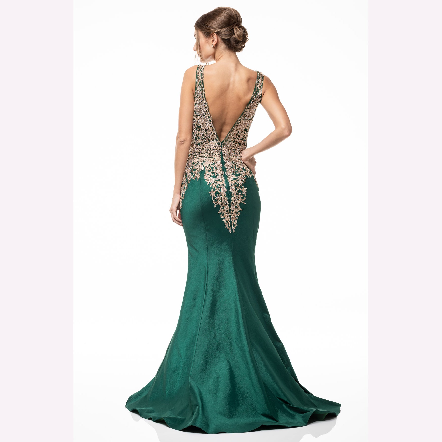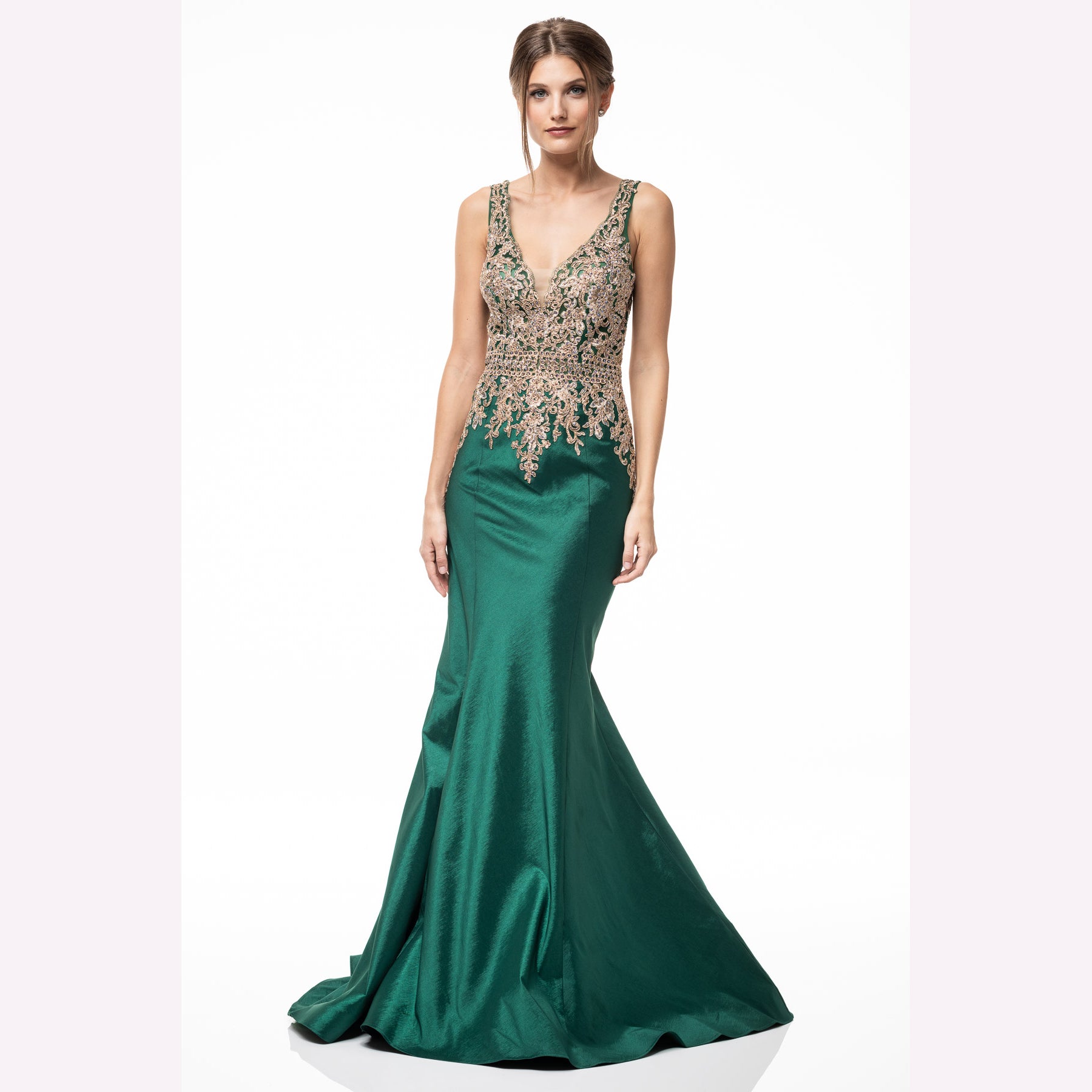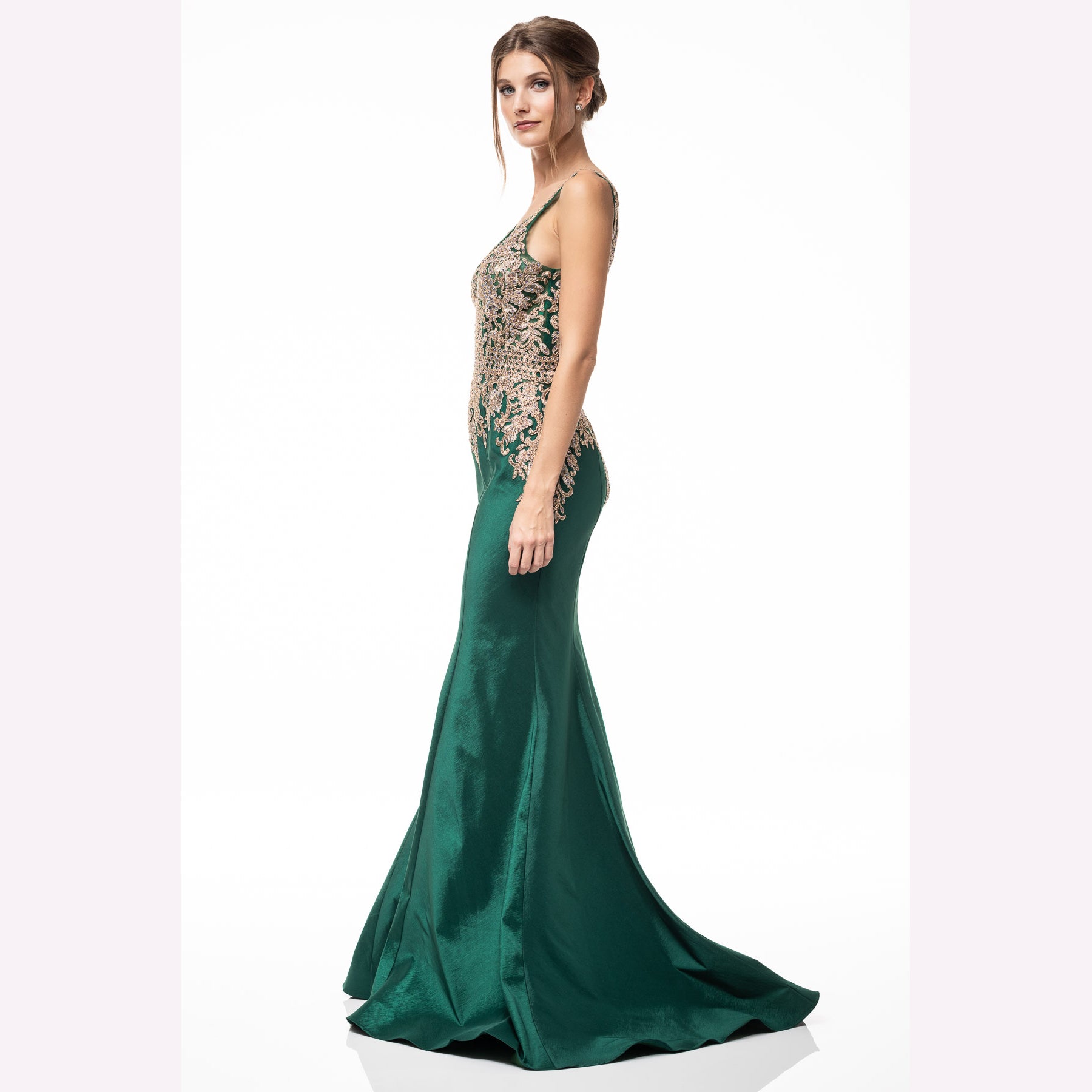 Vestido corte sirena con adorno de aplicación en la parte superior, recomendado para cuerpos tipo Reloj de Arena y Pera.