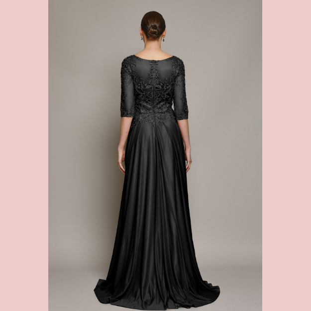 Vestido con manga larga en transparencia, recomendado para cuerpos tipo Manzana y Rectangulo.