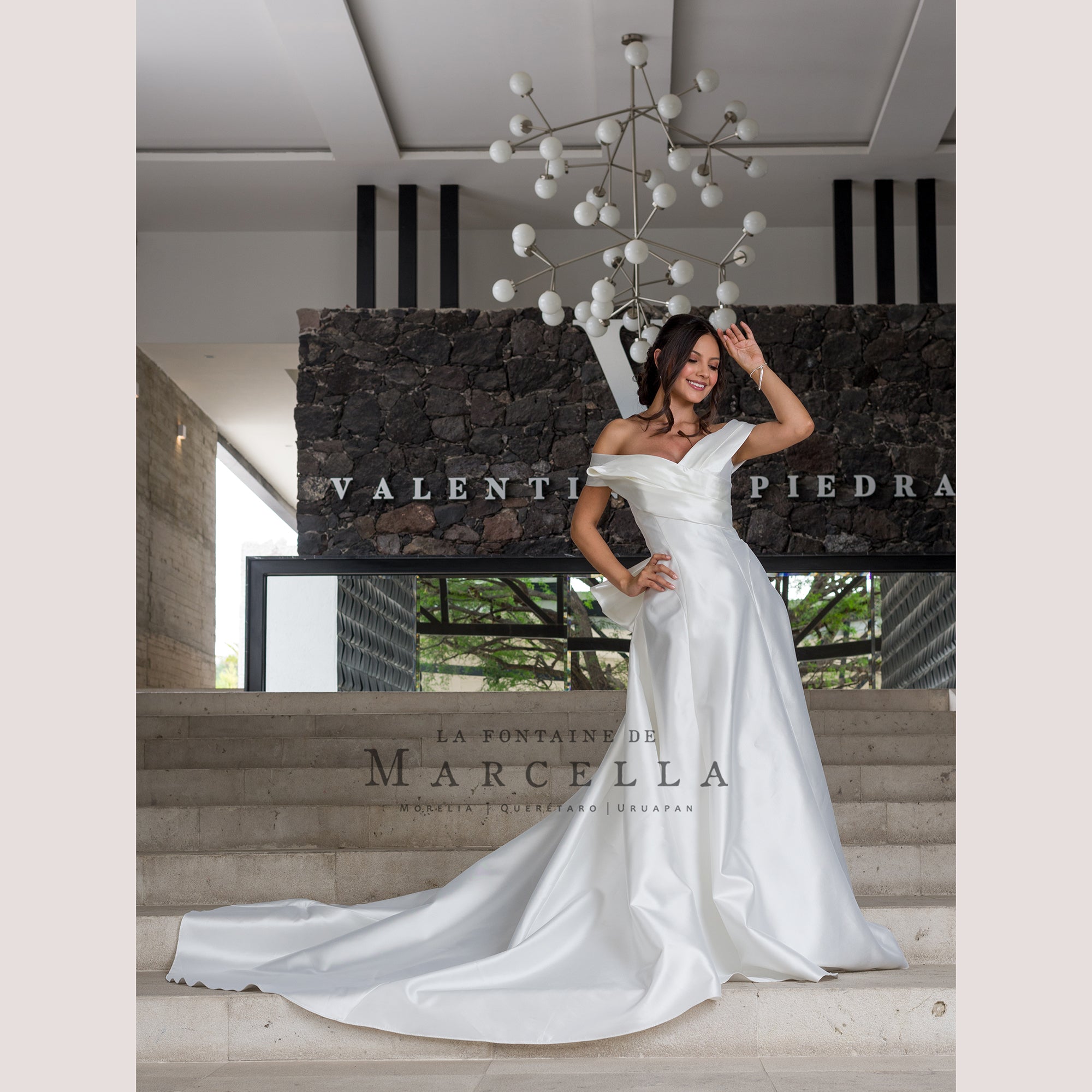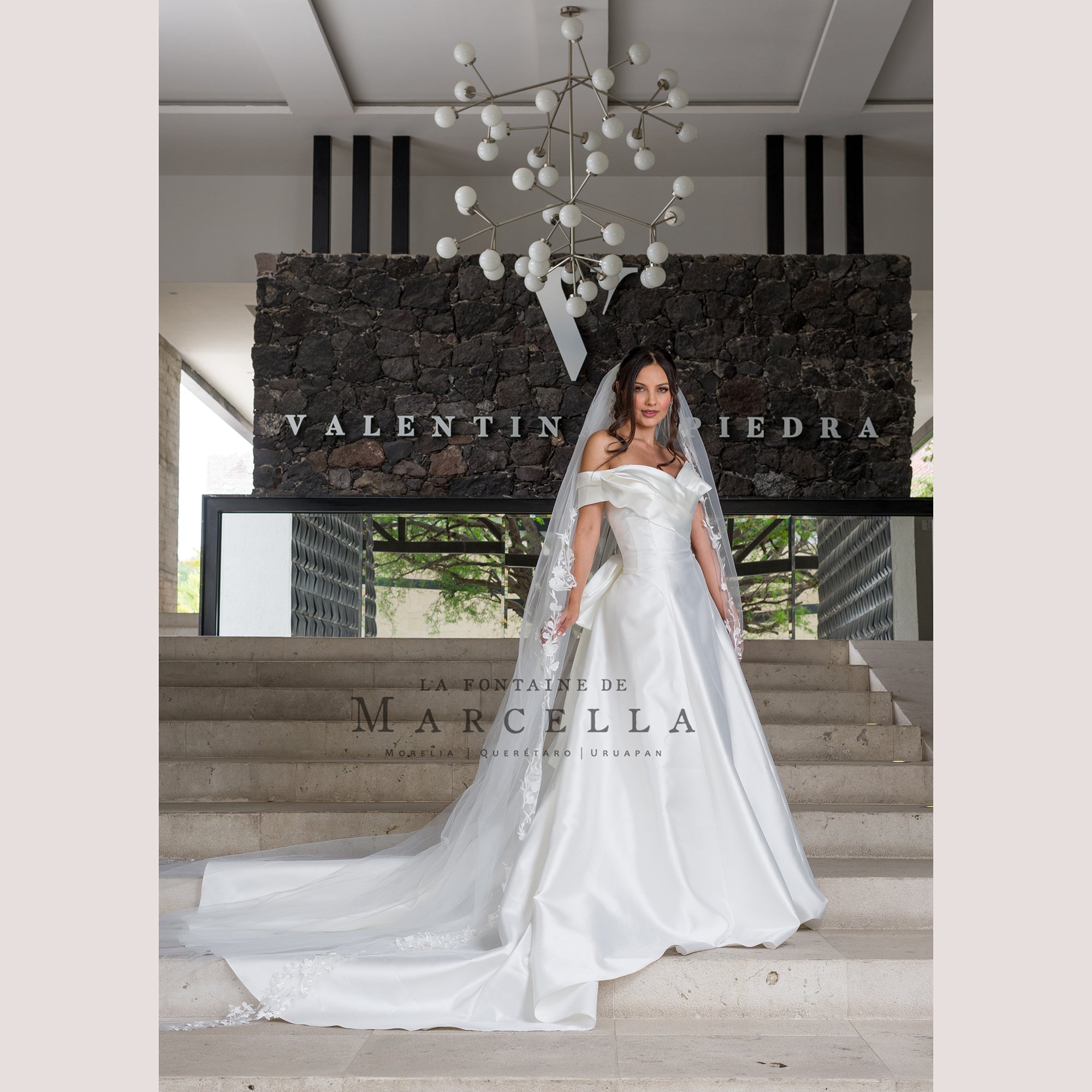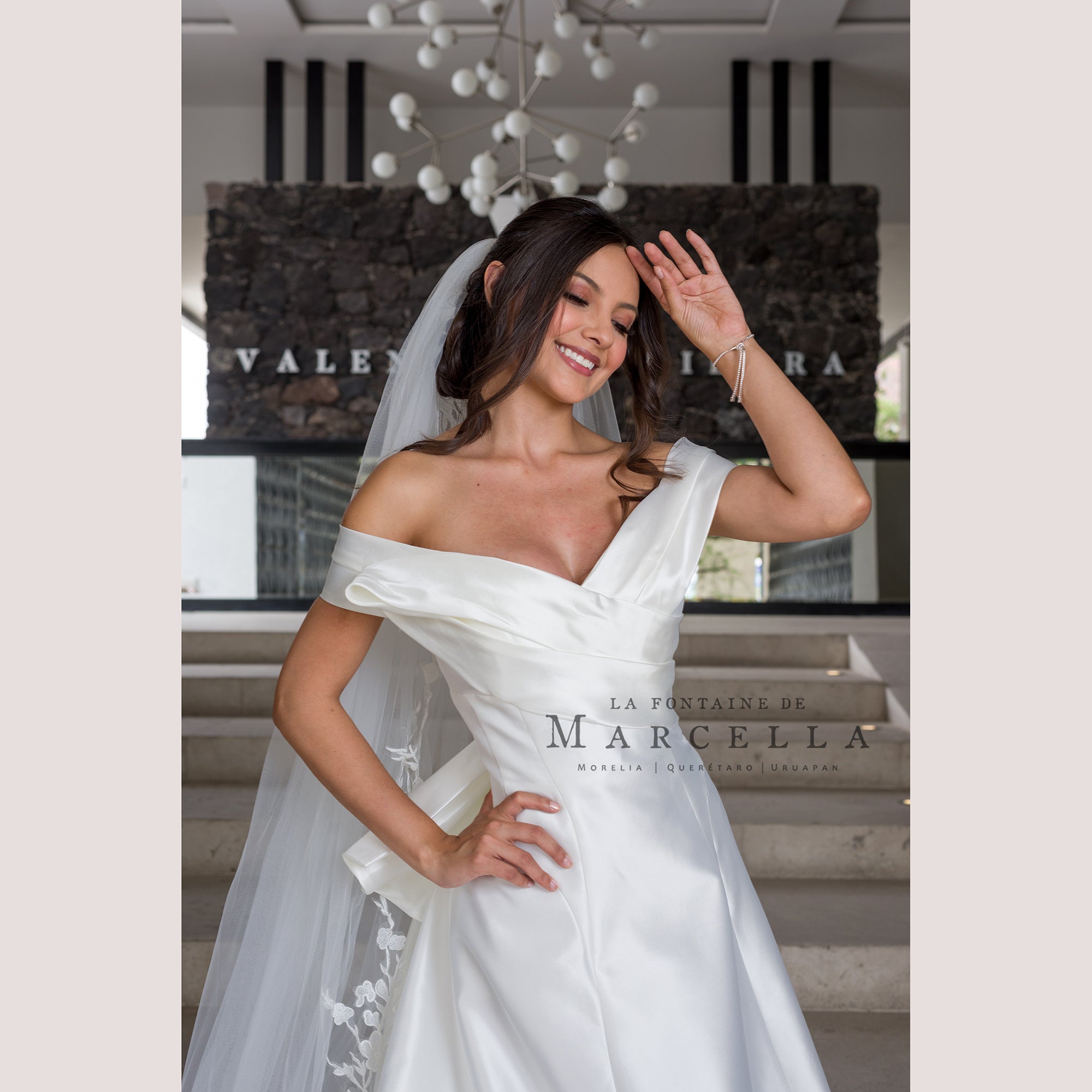 Vestido de novia corte en A con manga de ojal, es recomendado para cuerpos tipo Rectángulo y Triangulo Invertido. No incluye Velo*Read more