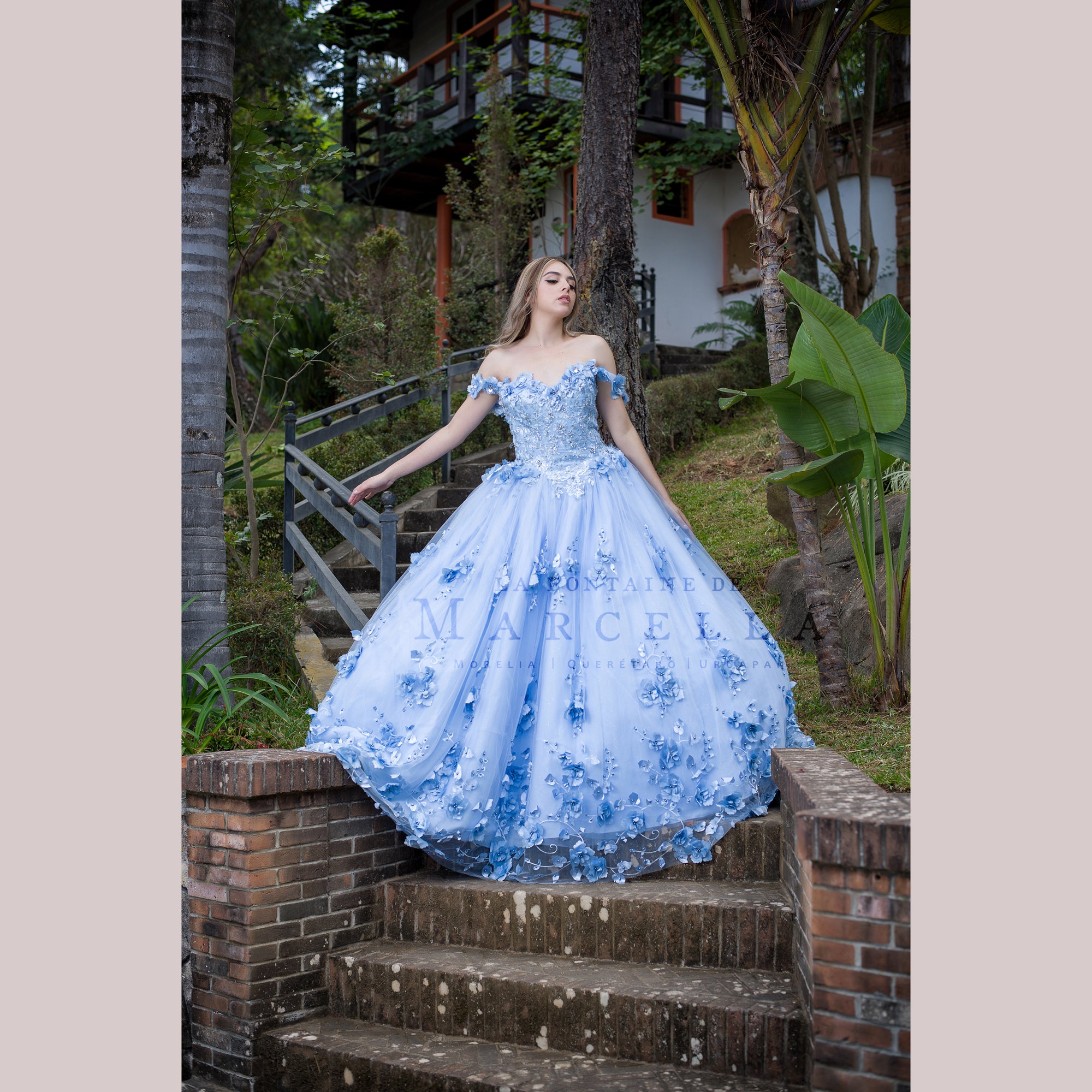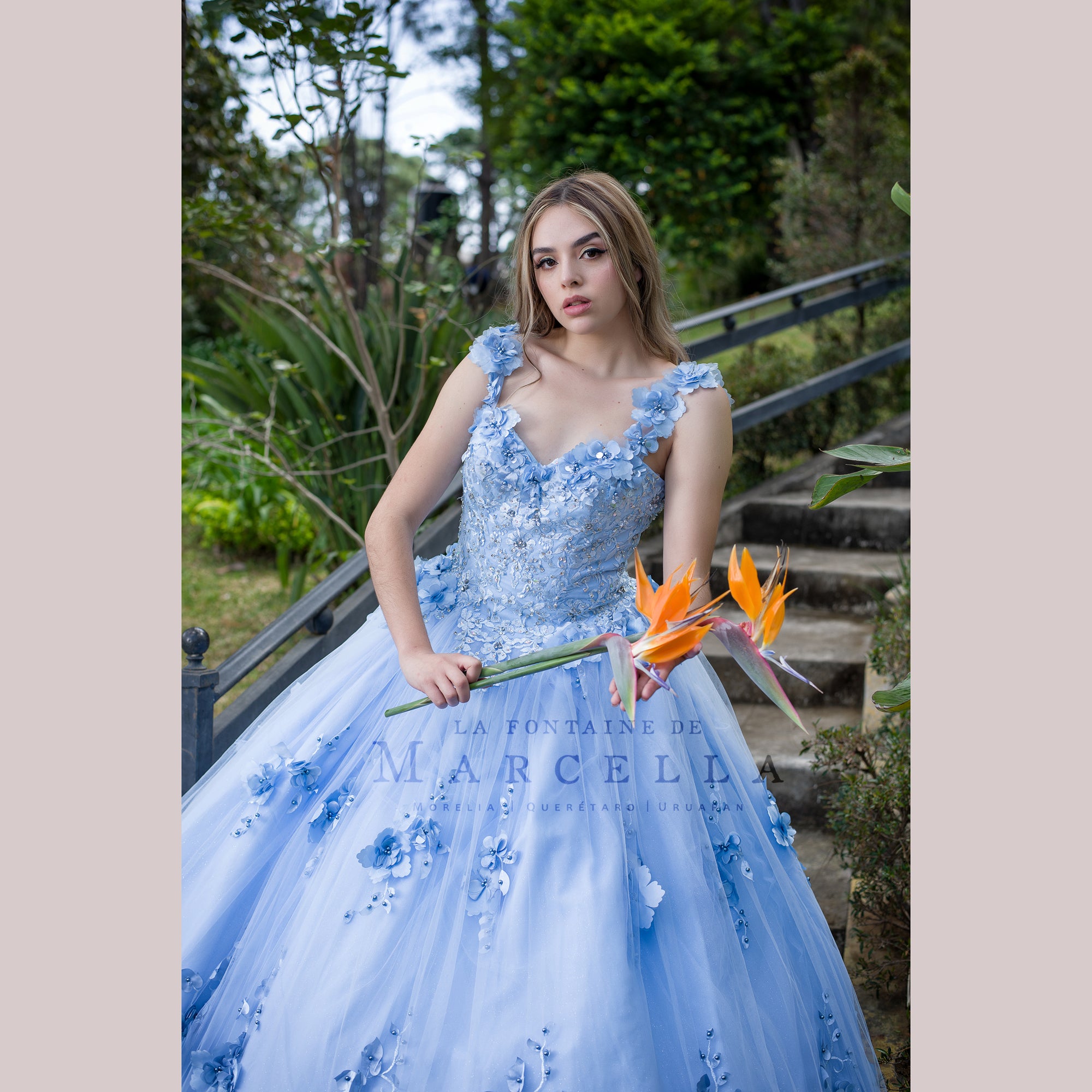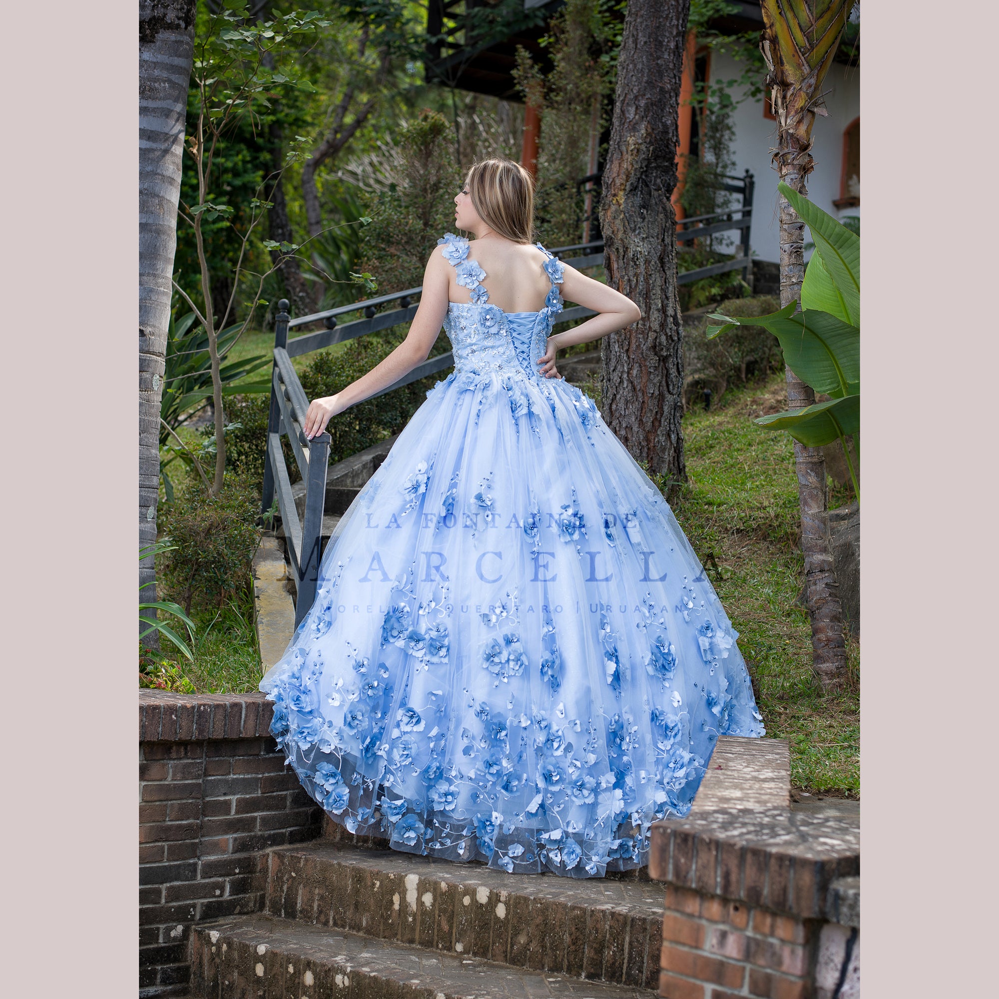 Vestido corte princesa adornado con aplicación en relieve, con corsé en la parte de atrás y manga de ojal, recomendado para cuerpos tipo Rectángulo, Triangulo Invertido y Reloj de Arena.Read more