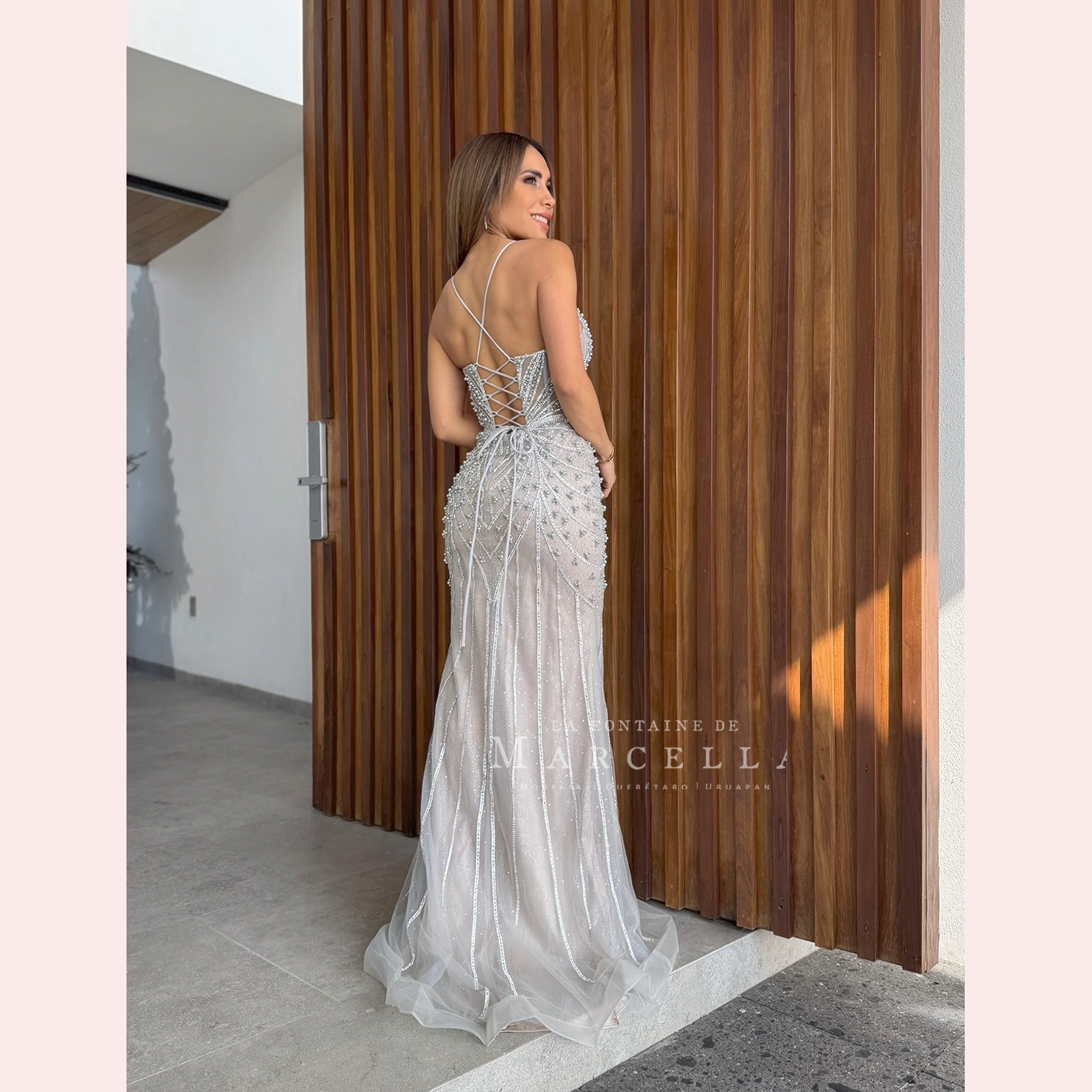 Vestido corte sirena con escote corazón y adornado con pedrería de fantasía, es recomendado para cuerpos tipo Reloj de Arena y Pera. Read more