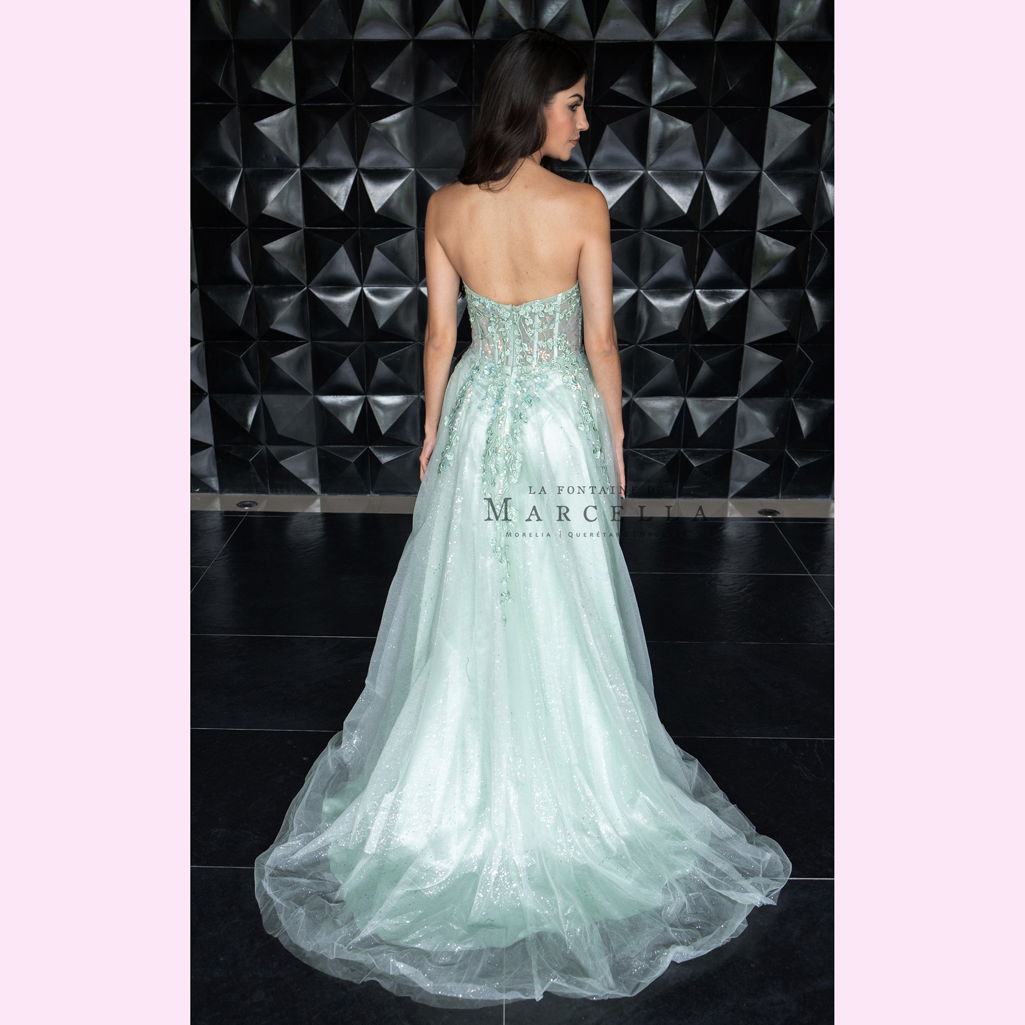 Vestido corte en A con cuello halter , recomendado para cuerpos tipo Rectángulo y Pera. Pieza única*