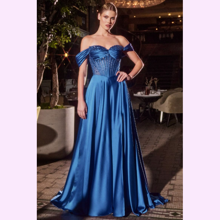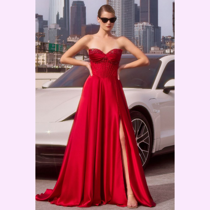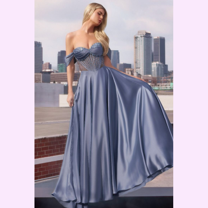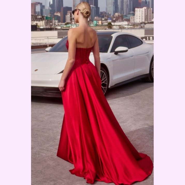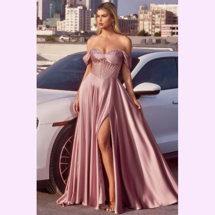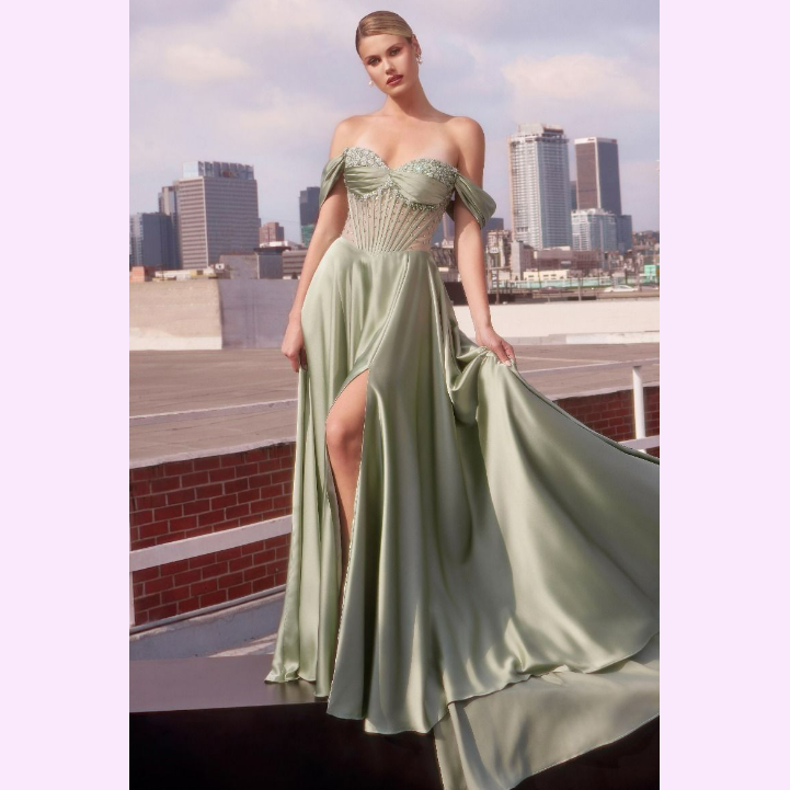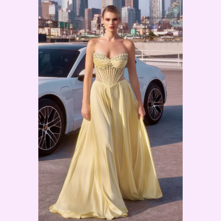 Vestido corte en A con manga de ojal desmontable y transparencia en la parte superior, es recomendado para cuerpos tipo Rectángulo, Manzana y Triangulo Invertido,