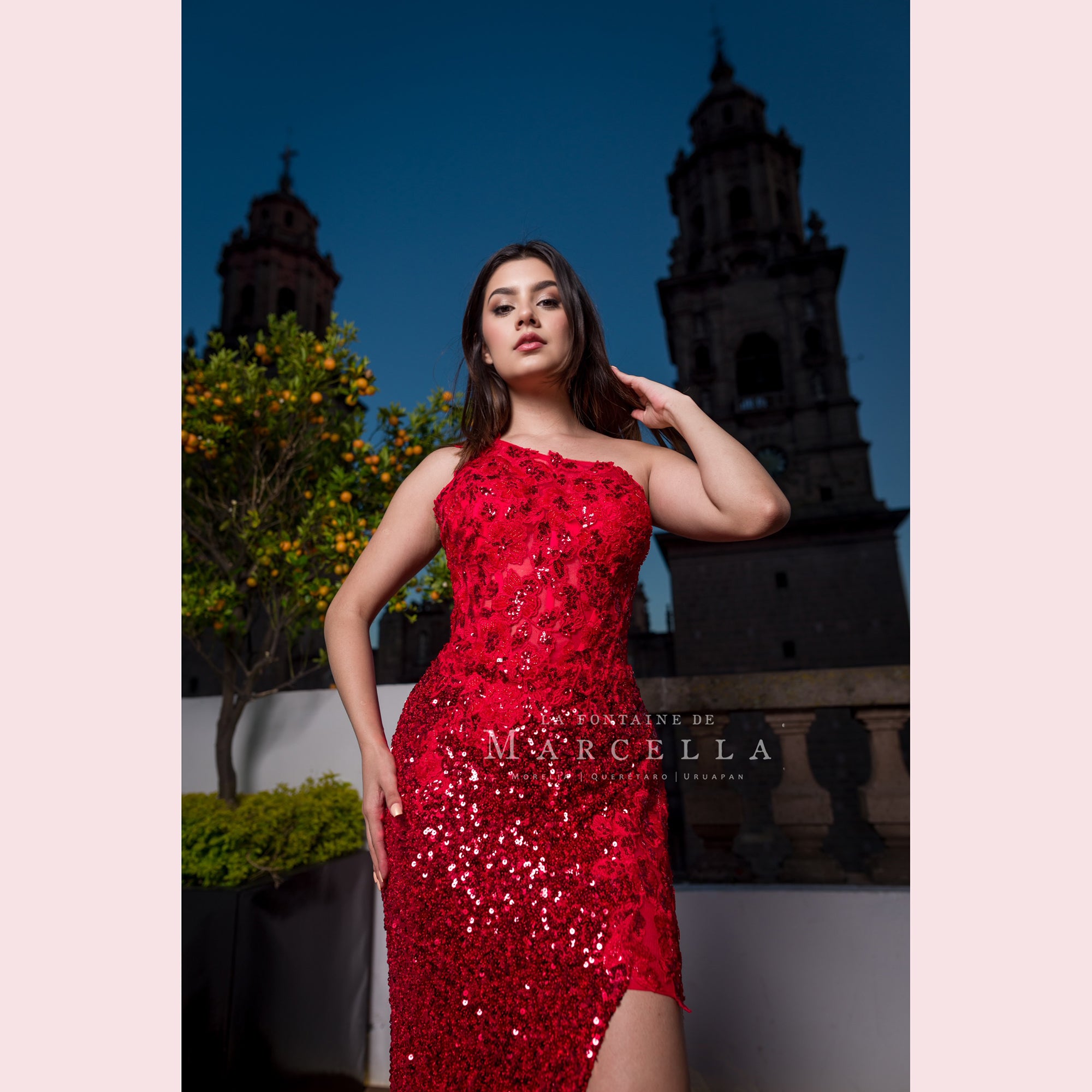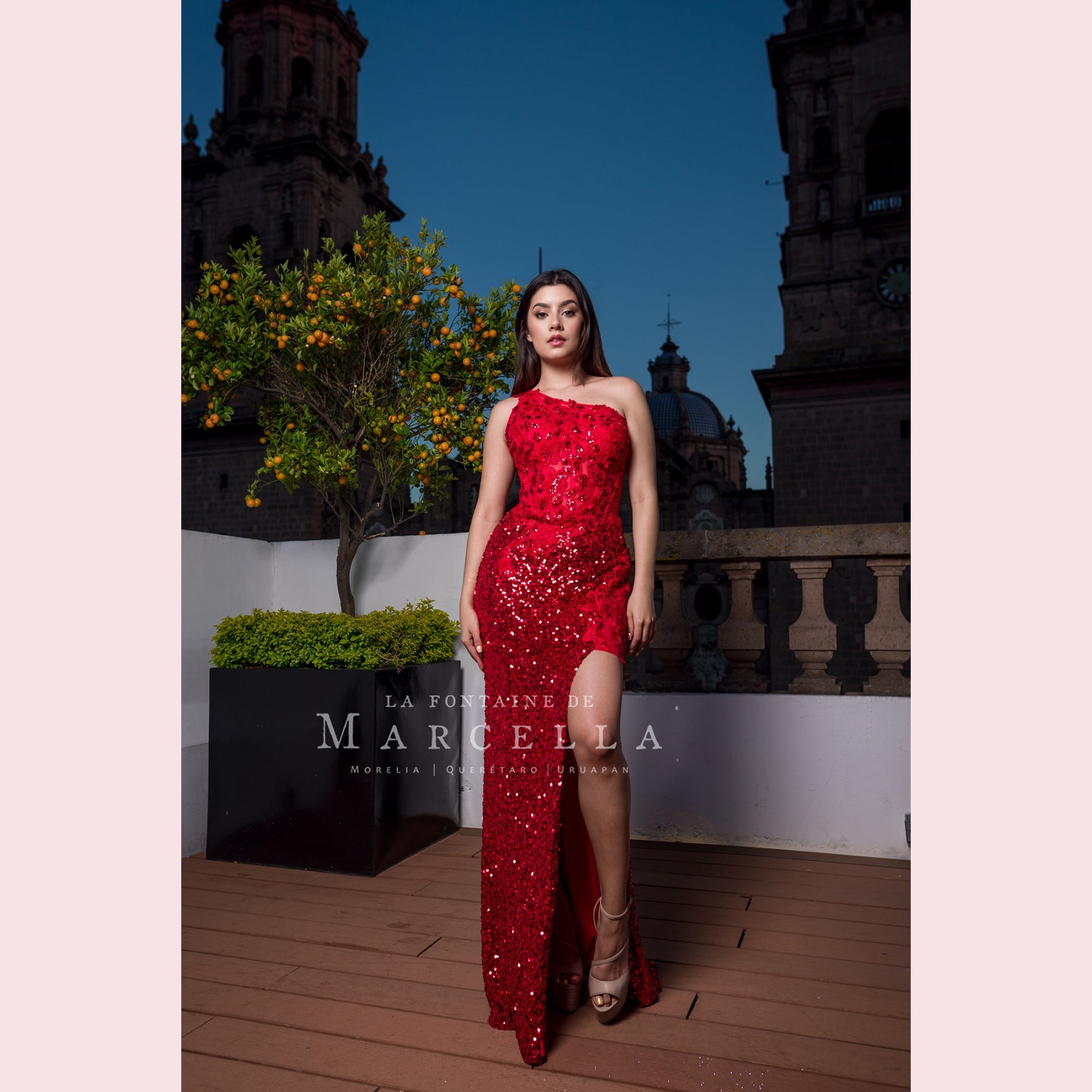 Vestido corte sirena adornado con aplicación y lentejuela, de un solo hombro es recomendado para cuerpos tipo Reloj de Arena y Pera.Read more