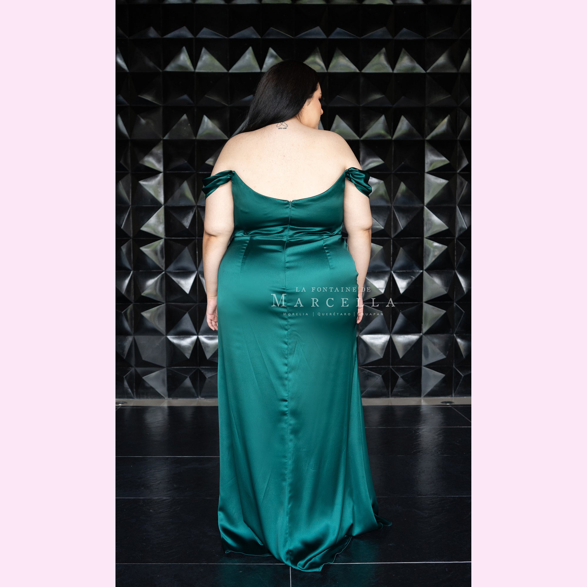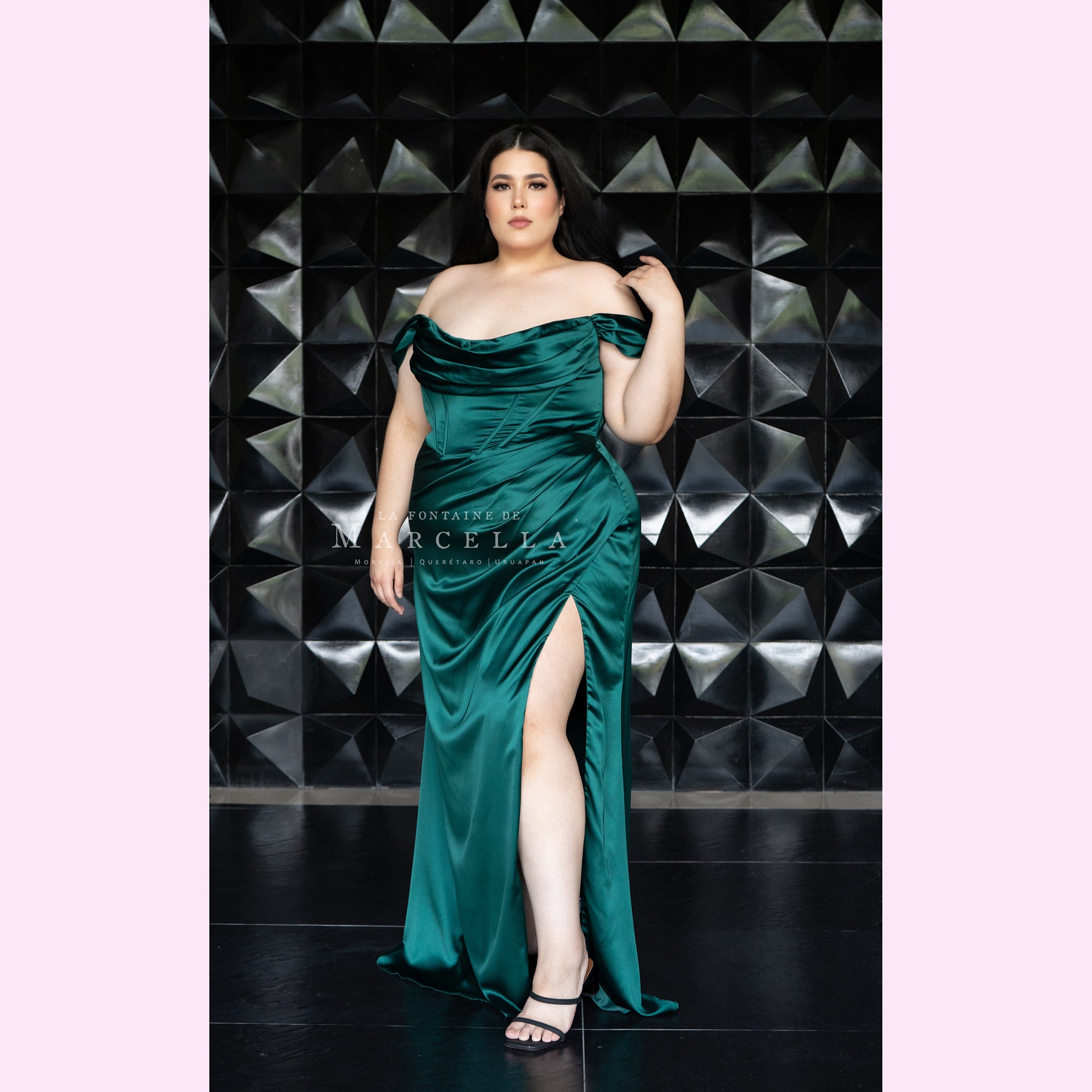 Vestido largo corte sirena con vista de corsé y manga de ojal, recomendado para cuerpos tipo Reloj de Arena y Pera.Read more
