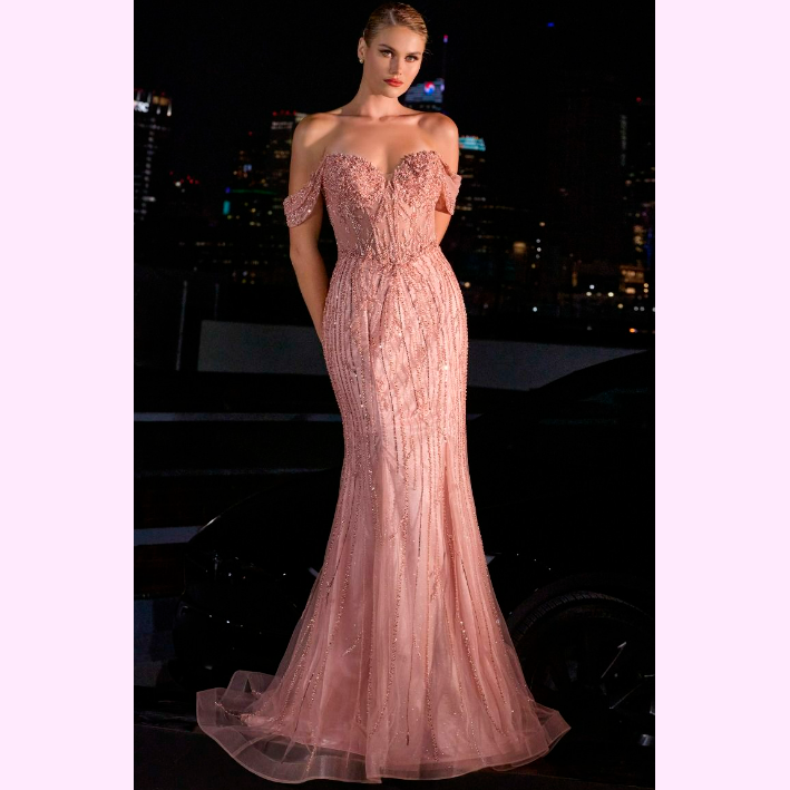 Vestido corte sirena con manga de ojal y transparencia en la parte superior, es recomendado para cuerpos tipo Reloj de Arena, Pera y Triangulo Invertido. Read more