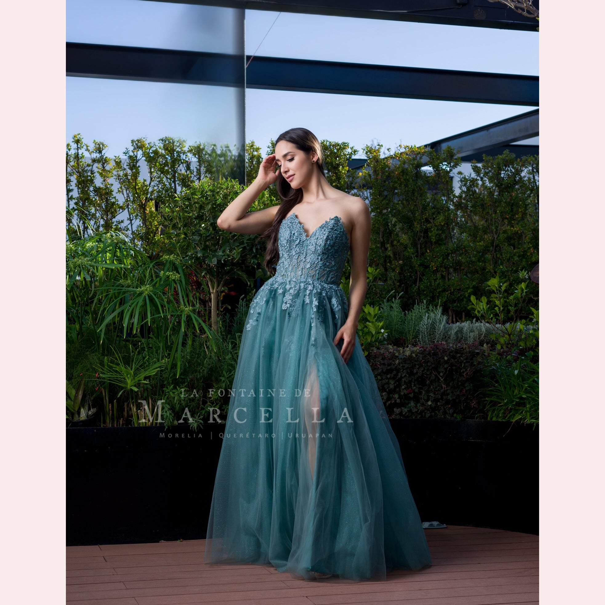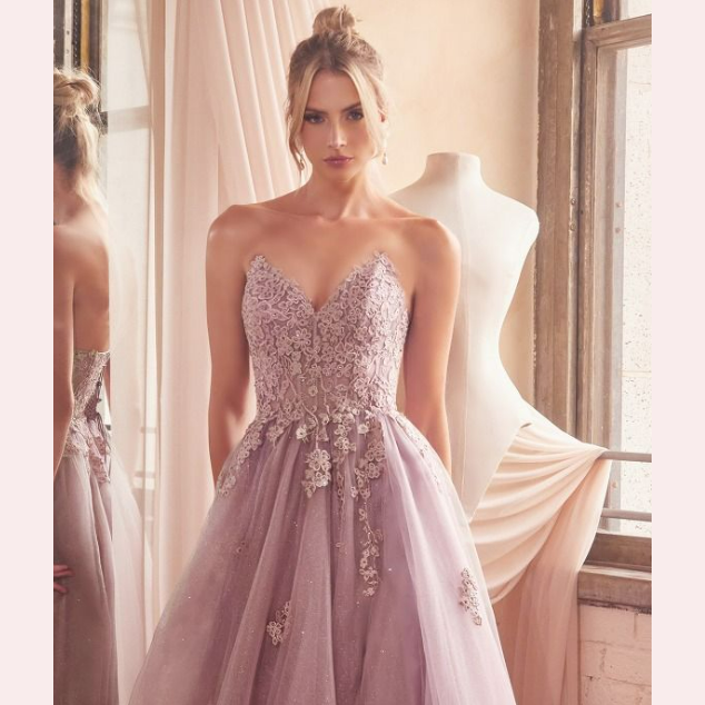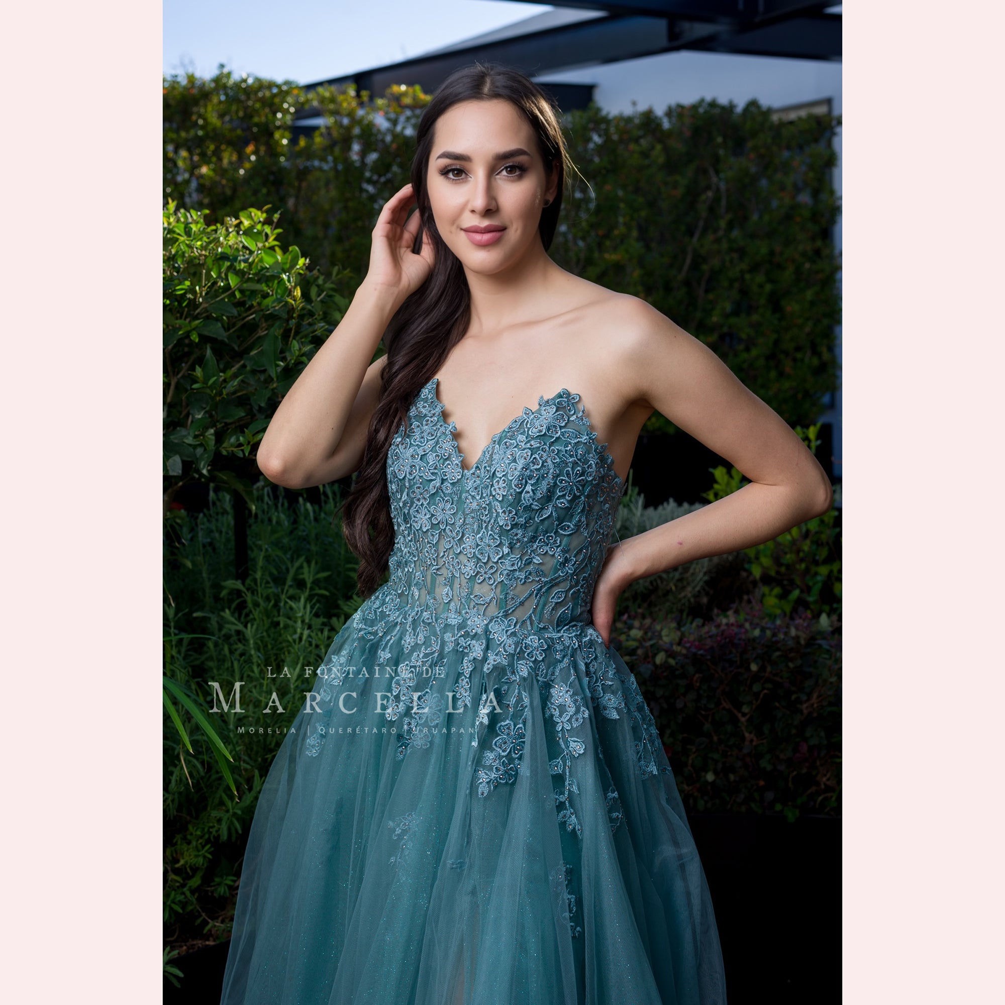 Vestido corte en A en tul, de escote corazón adornado con aplicación en la parte superior, es recomendado para cuerpos tipo Triangulo Invertido y Rectángulo.Read more