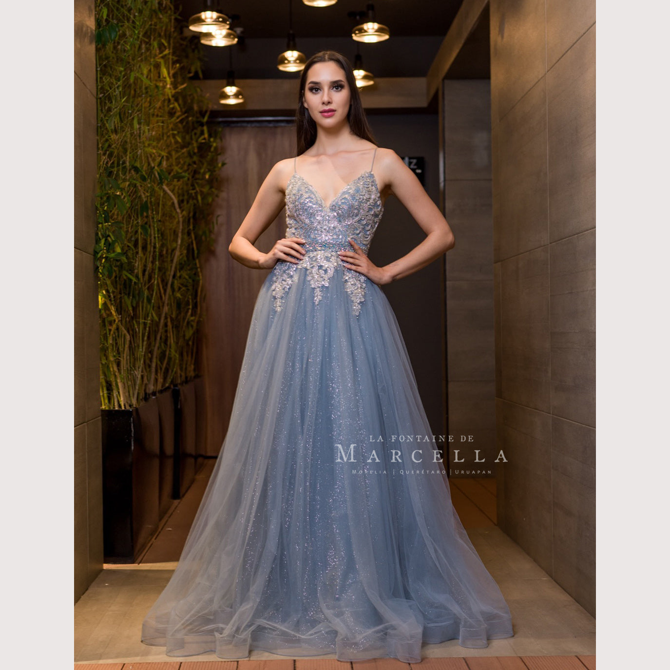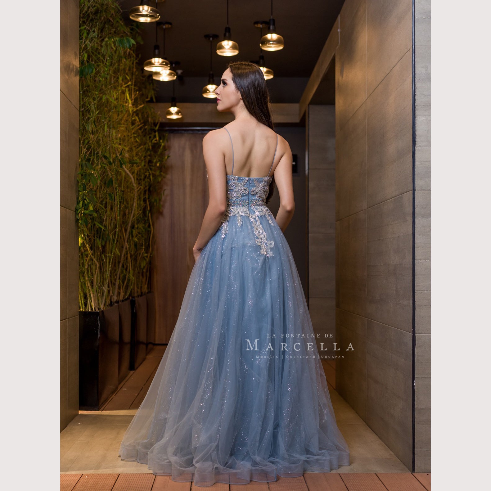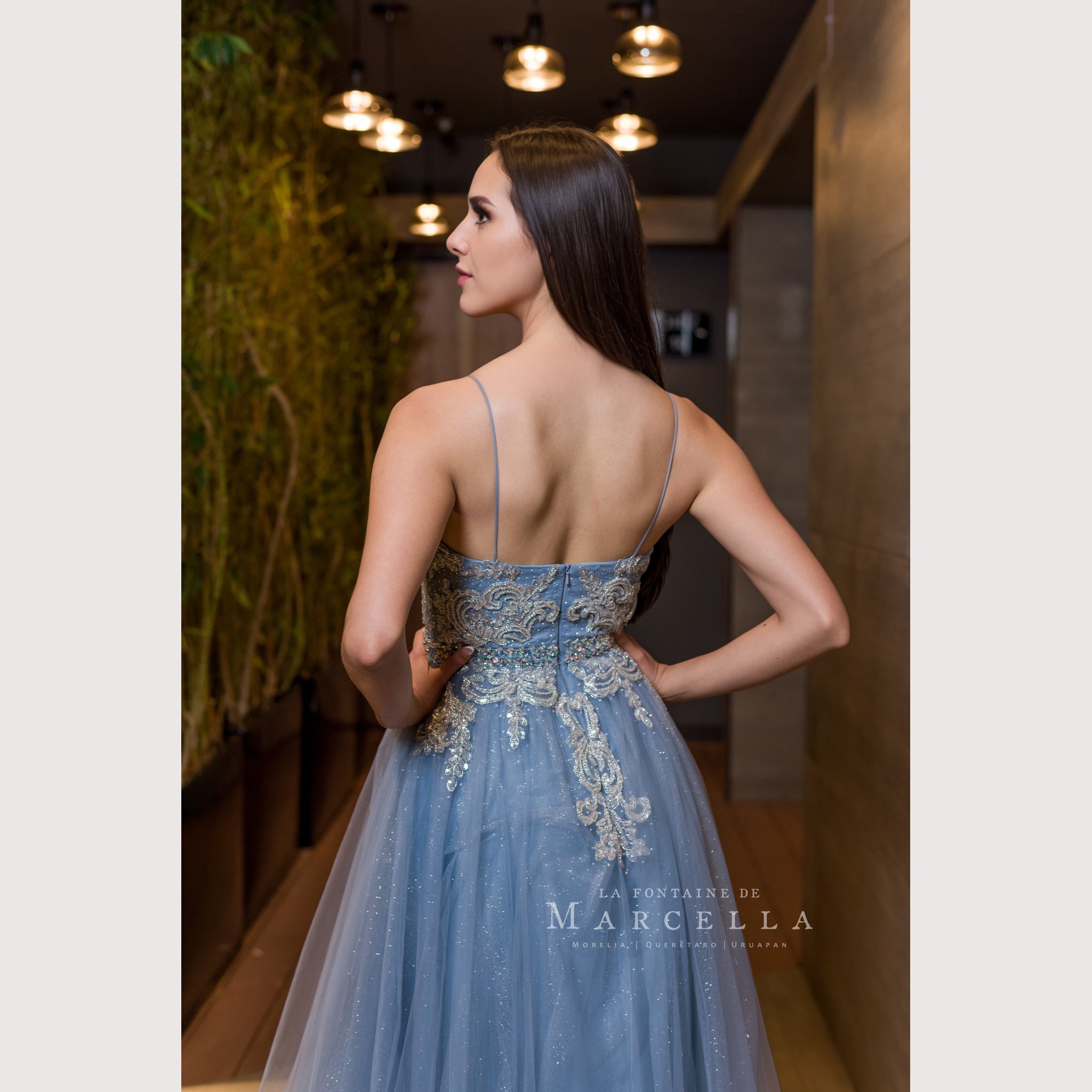 Vestido corte A con tirante delgado y aplicación en la parte superior, es recomendado para cuerpos tipo Rectángulo y Triangulo Invertido.Read more