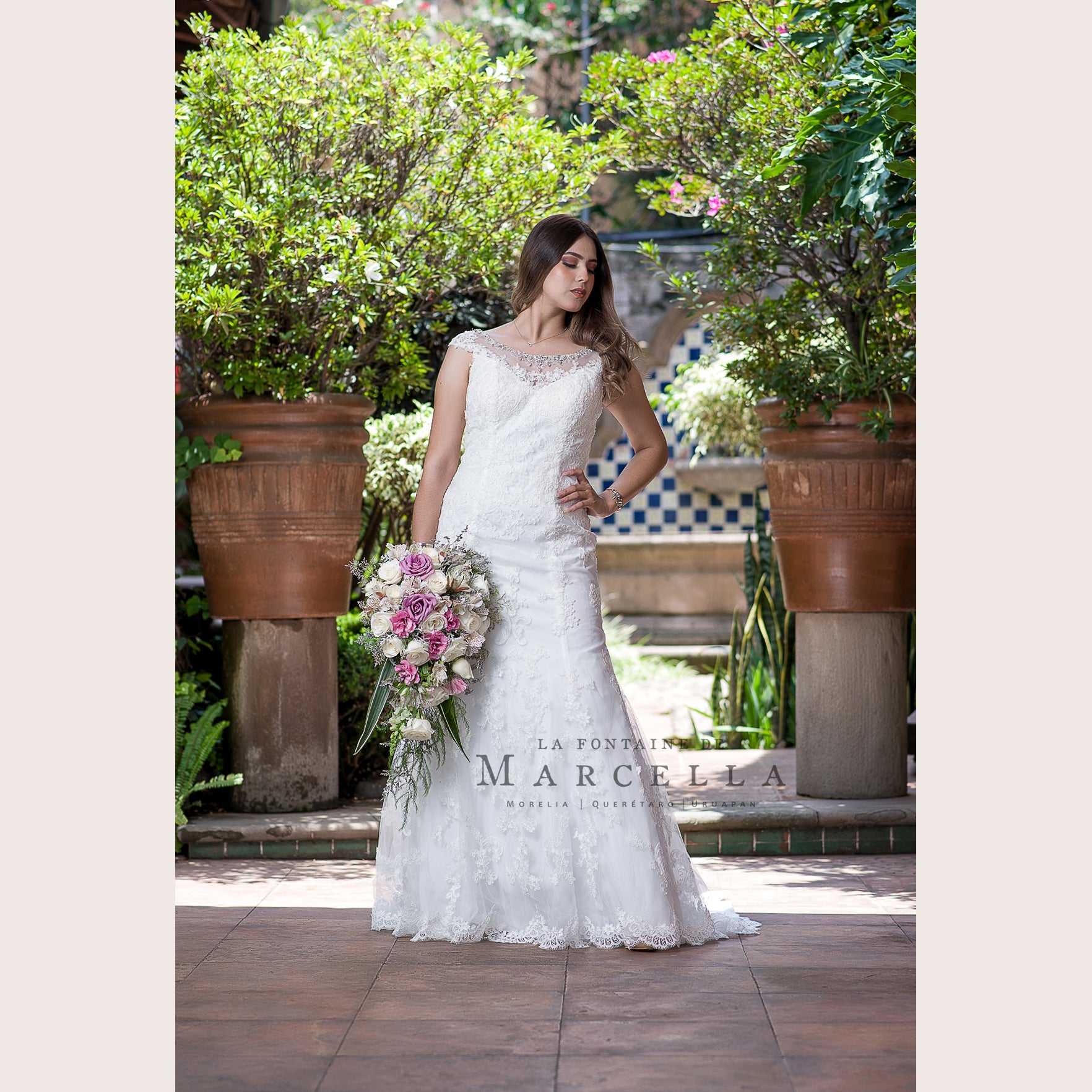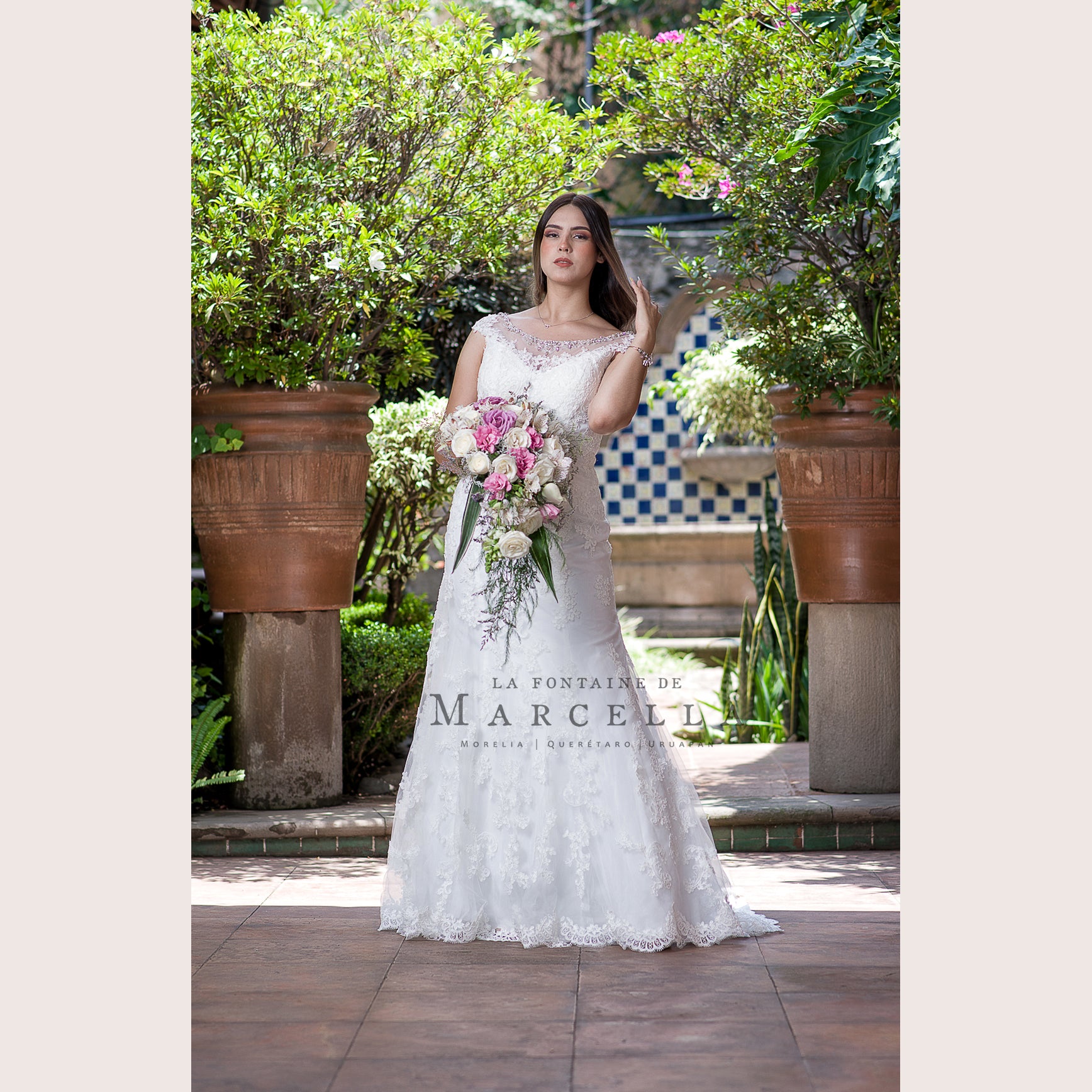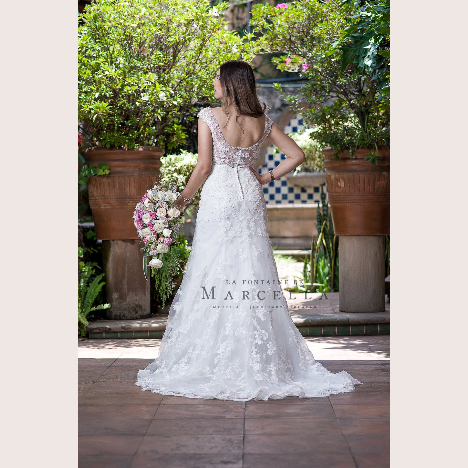 Vestido de novia de corte princesa con adorno de botón en la espalda.Read more