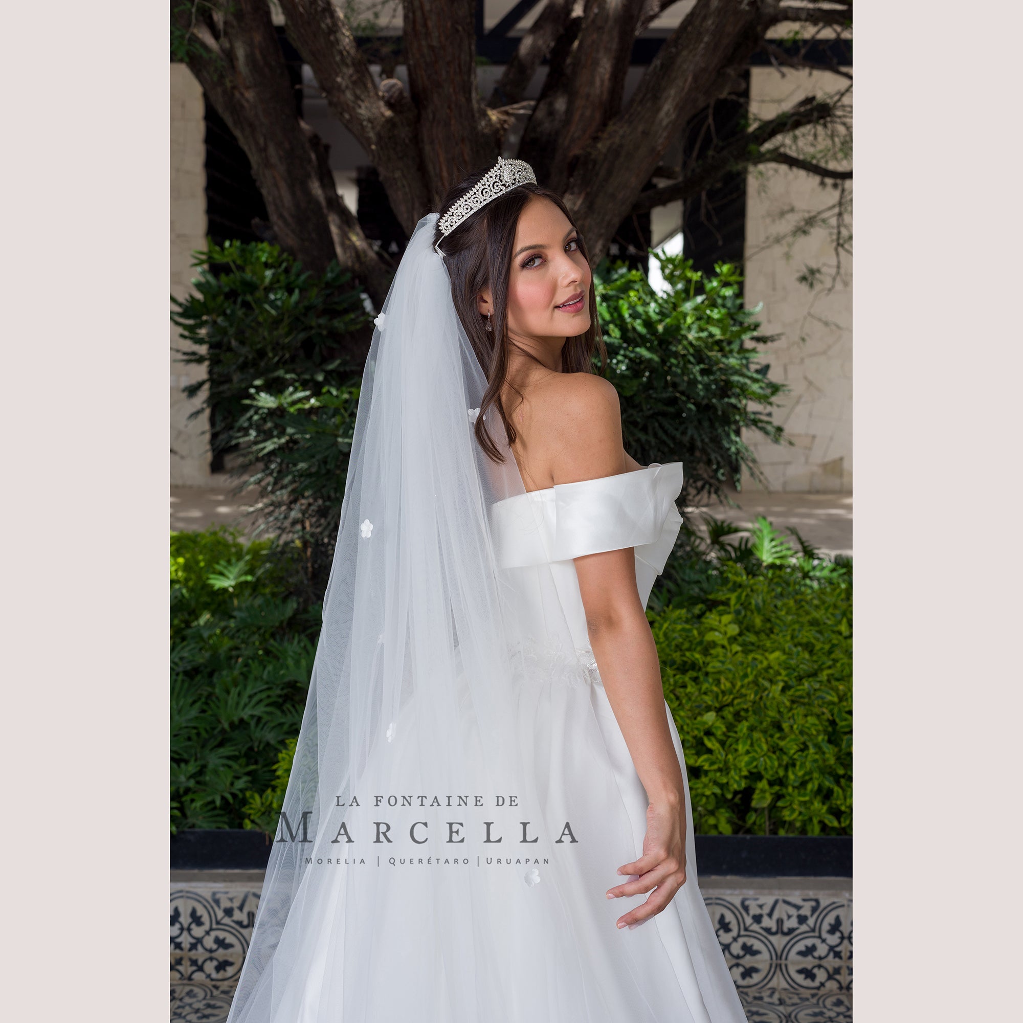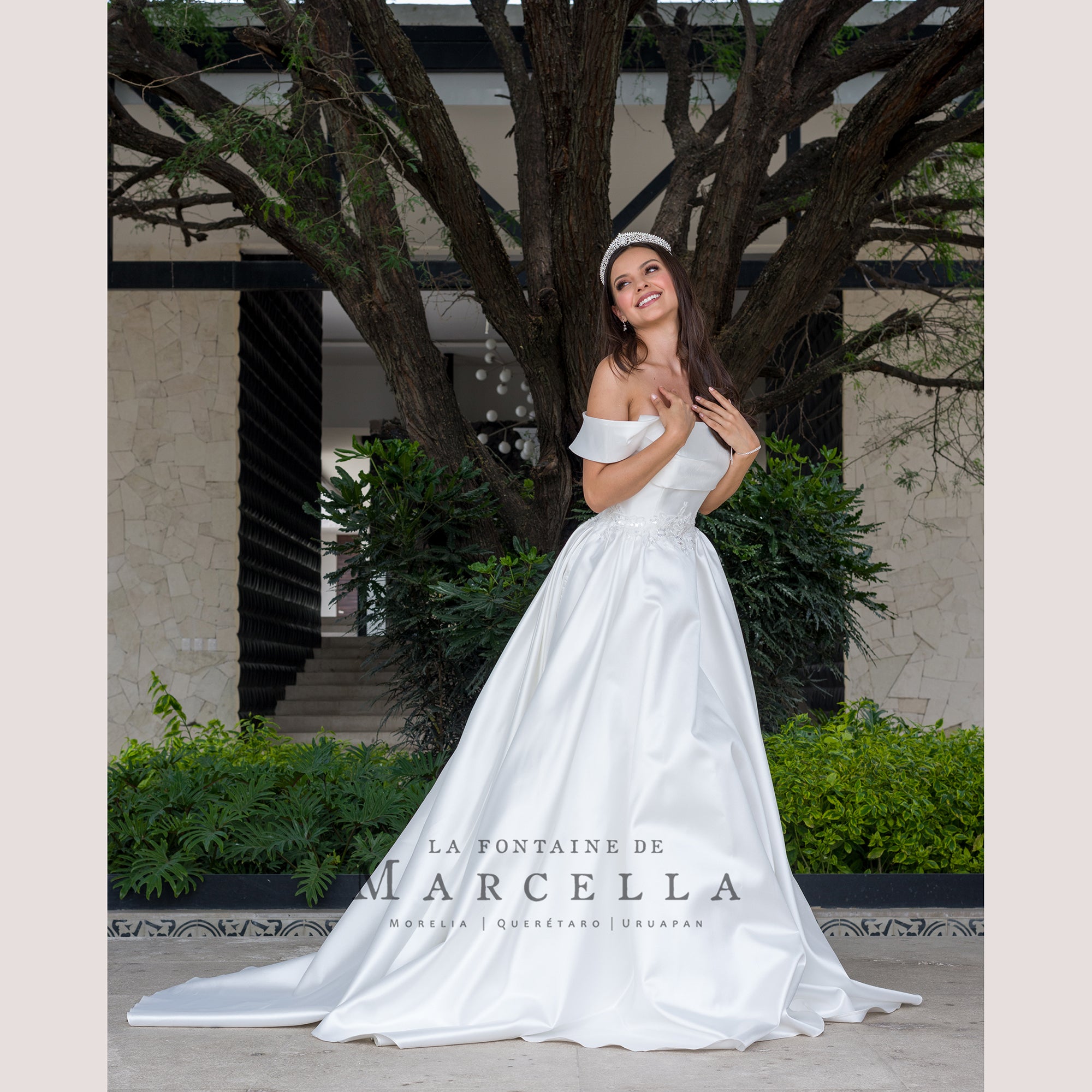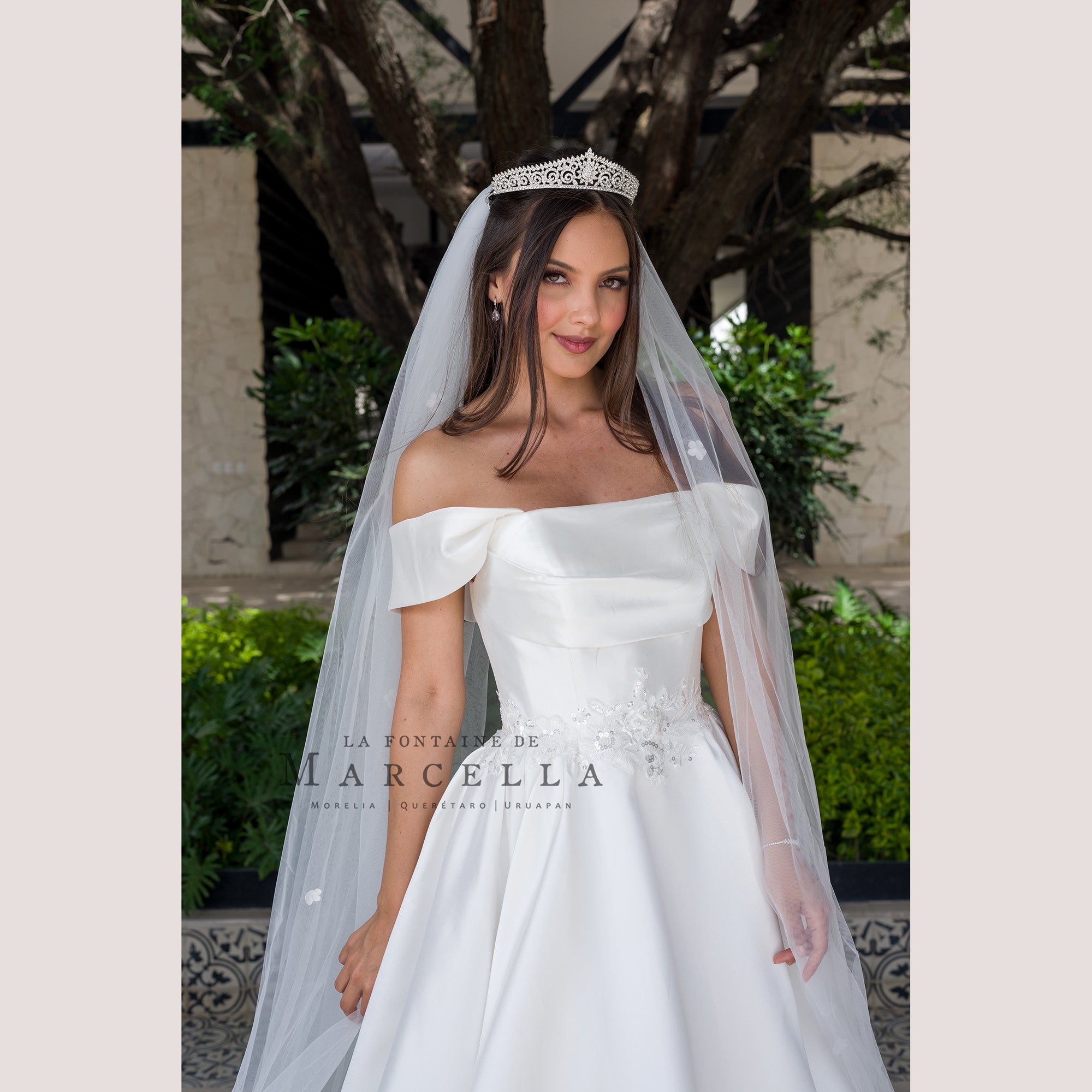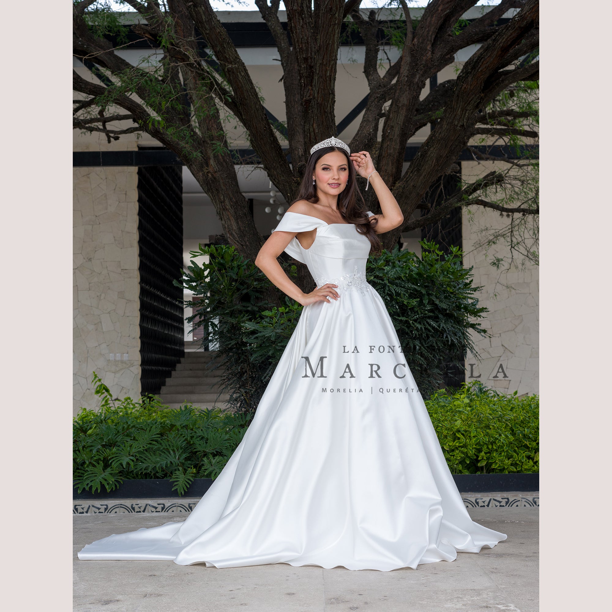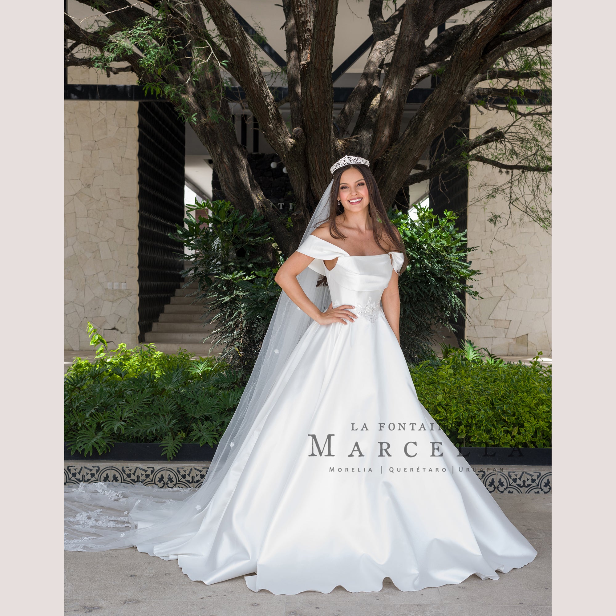 Vestido corte princesa con manga de ojal, recomendado para cuerpos tipo Rectangulo y y Triangulo Invertido.