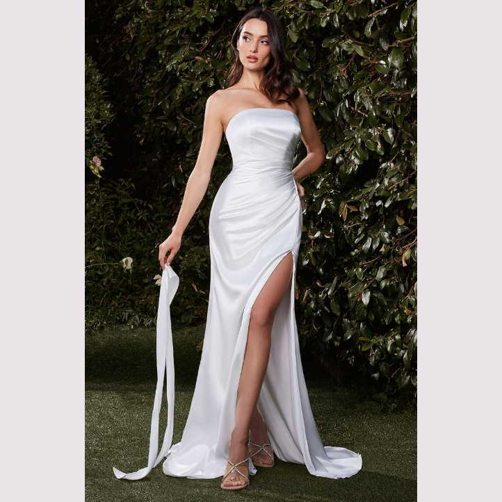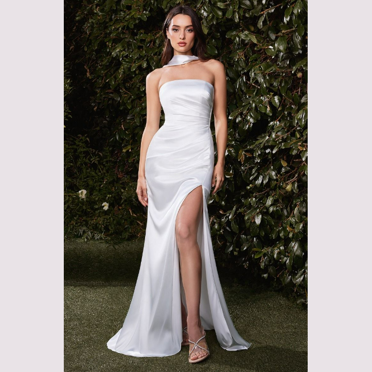 Vestido corte sirena, strapless con pashmina, es recomendado para cuerpos tipo Reloj de Arena y Pera.