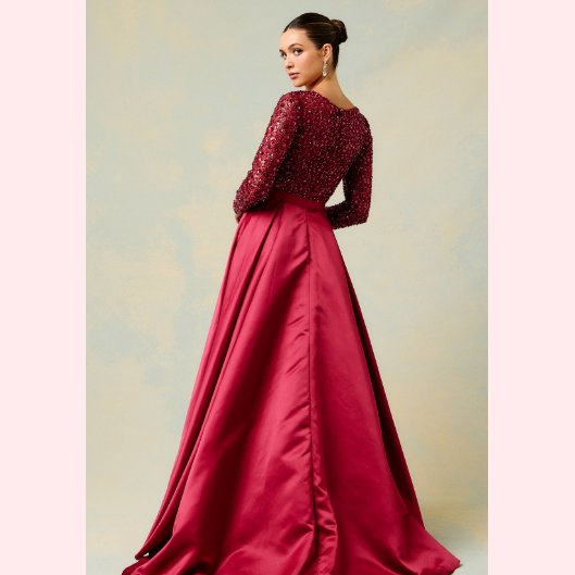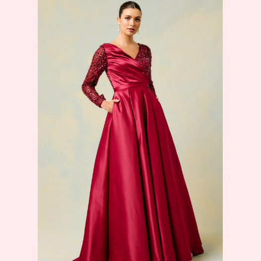 Vestido corte en A con escote en V plisado, adorno de lentejuela, recomendado para cuerpos tipo Rectángulo y Manzana.