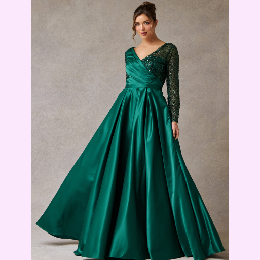Vestido corte en A con escote en V plisado, adorno de lentejuela, recomendado para cuerpos tipo Rectángulo y Manzana. Read more