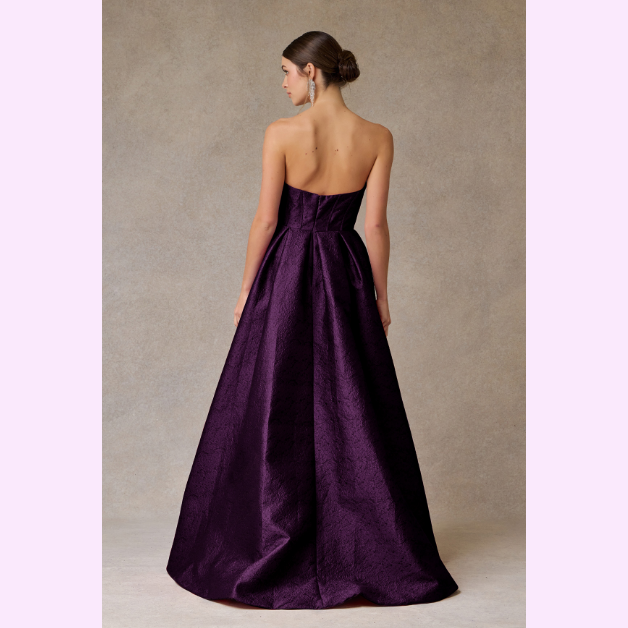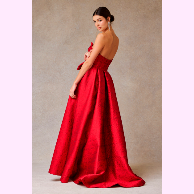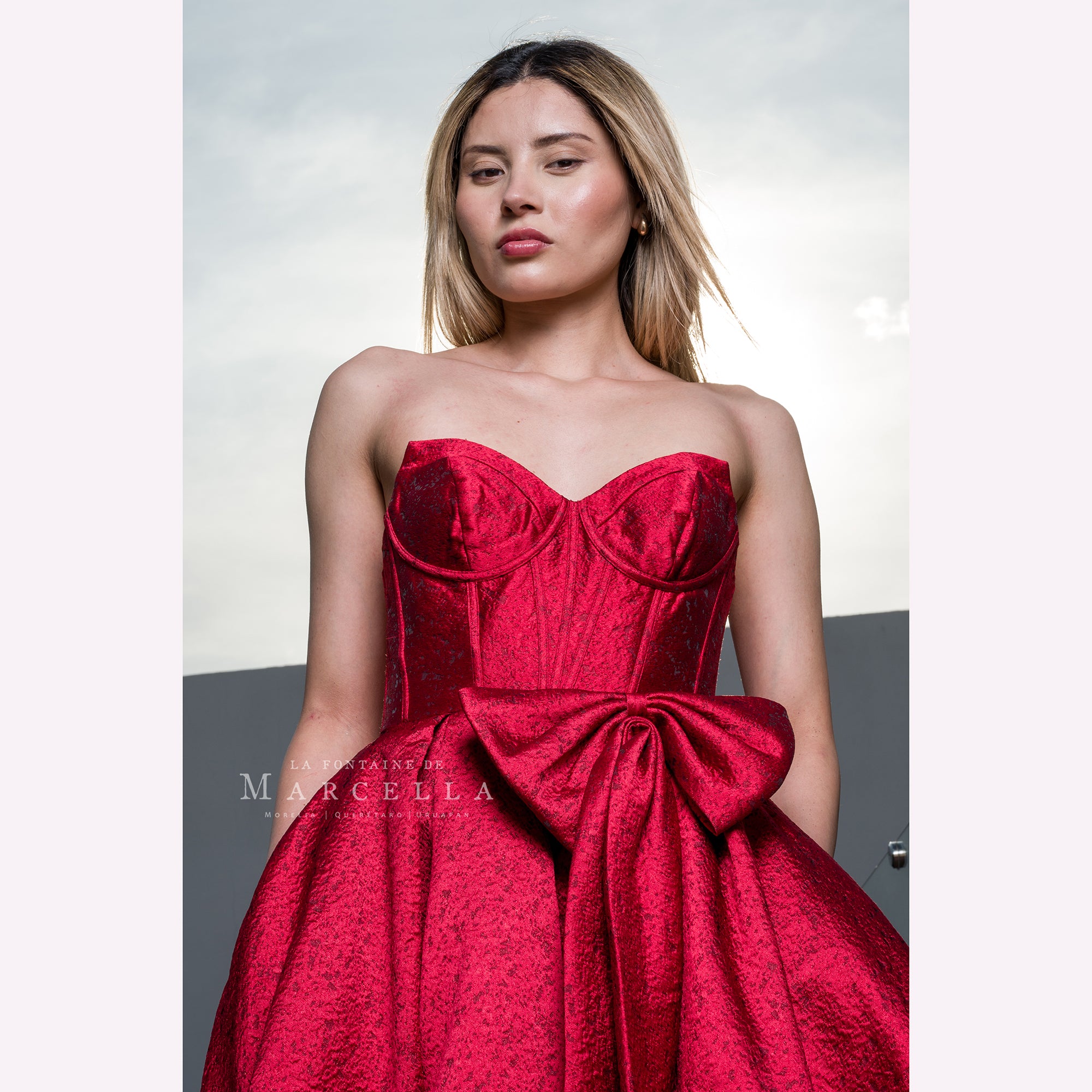 Vestido corte en A con escote corazón en tela texturizada, es recomendado para cuerpos tipo Triangulo Invertido, Manzana y Rectángulo.