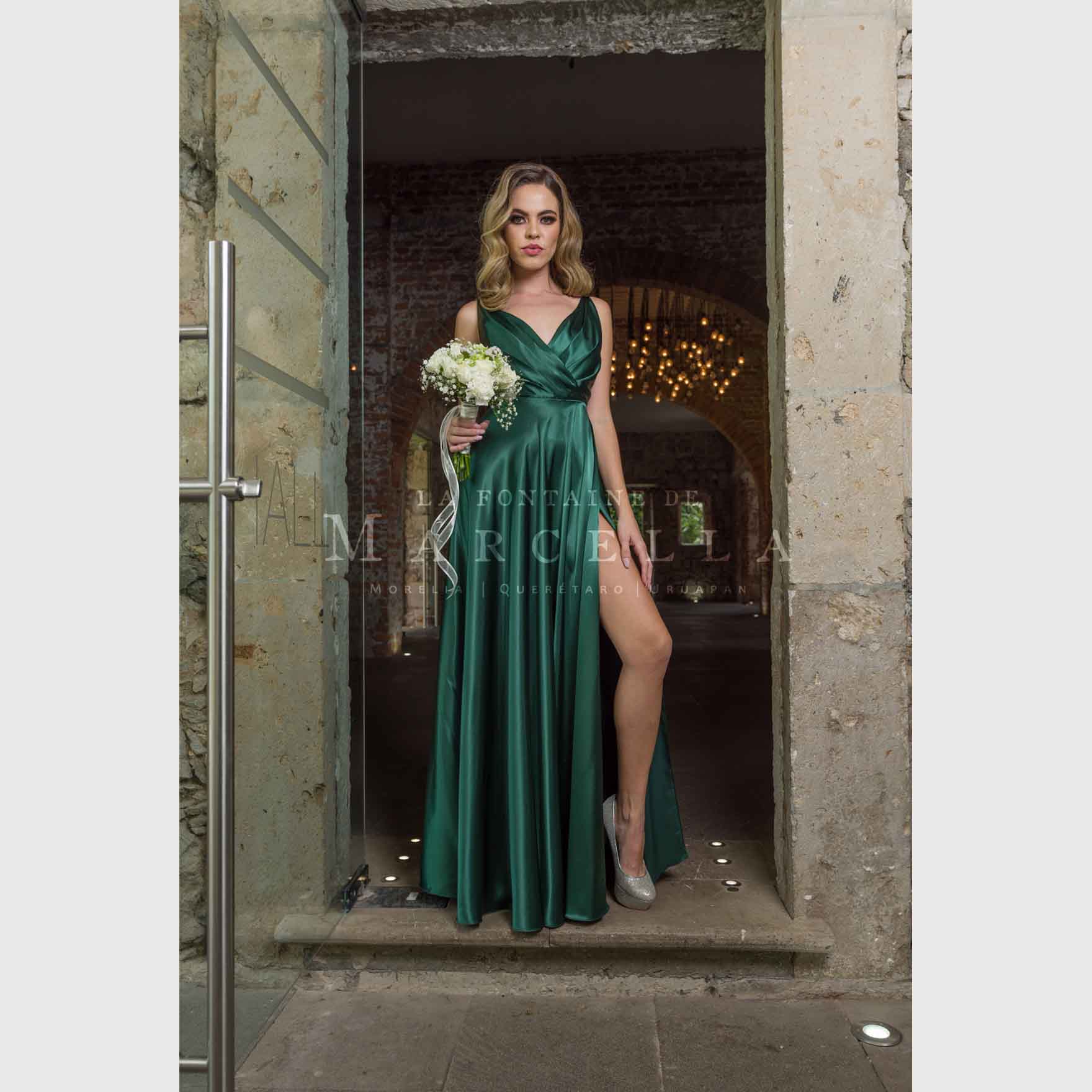 Vestido largo de corte A con tirantes que pueden amarrarse al gusto, con abertura en la pierna y escote corazón, es recomendado para cuerpos tipo Rectángulo, Manzana y Reloj de Arena.Leer más
